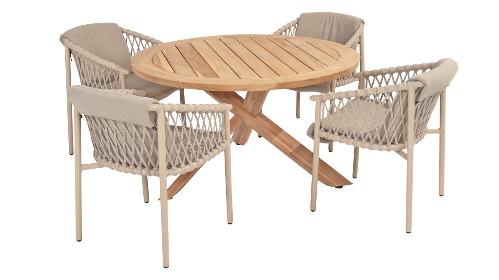 Das Flaggschiff der Kollektion, so kann man diesen Tisch ruhig bezeichnen. Das hochwertige Teakholz in Kombination mit dem schönen Kreuzfuß machen diesen Taste by 4Seasons Prado Ø130cm Tisch zu einem Schmuckstück. Er lässt sich mit nahezu jedem Esszimmerstuhl aus unserer Kollektion kombinieren, sodass für jeden Geschmack etwas dabei ist. Optional kann er mit Prado Lazy Susan kombiniert werden. Die Platte ist sowohl in Teakholz als auch in Keramik erhältlich.