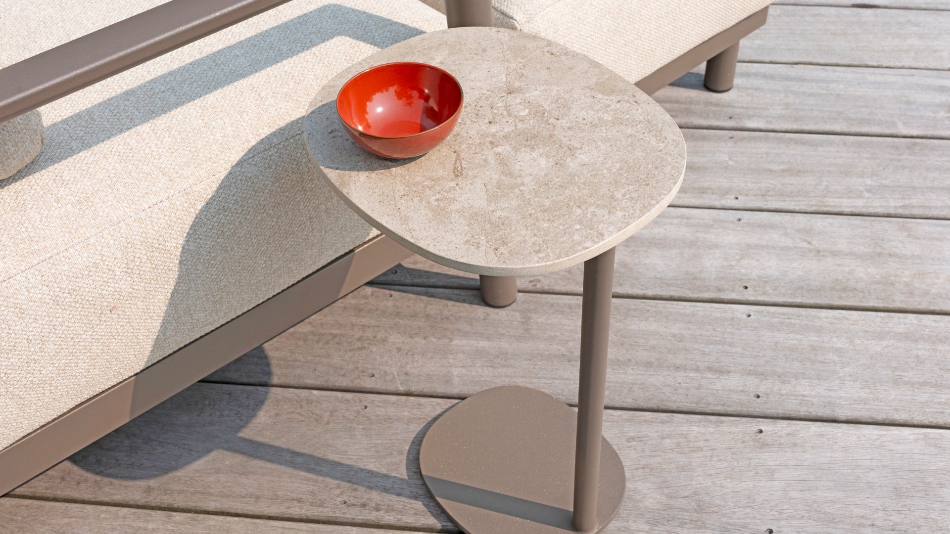 Entdecken Sie die Schönheit und Vielseitigkeit des runden Couchtisches 4 Seasons Outdoor Boaz mit seiner wunderschönen Keramiktischplatte und dem pulverbeschichteten Gestell. Dieser Tisch verleiht Ihrem Außenbereich einen Hauch natürlicher Eleganz und wurde mit Liebe zum Detail entworfen. Charakteristisch ist das zentrale Bein und die robuste Bodenplatte, die den 4Seasons Boaz Tisch äußerst stabil machen. Die Tischserie Boaz besteht aus 3 Größen und 2 Farben Terre und Latte.