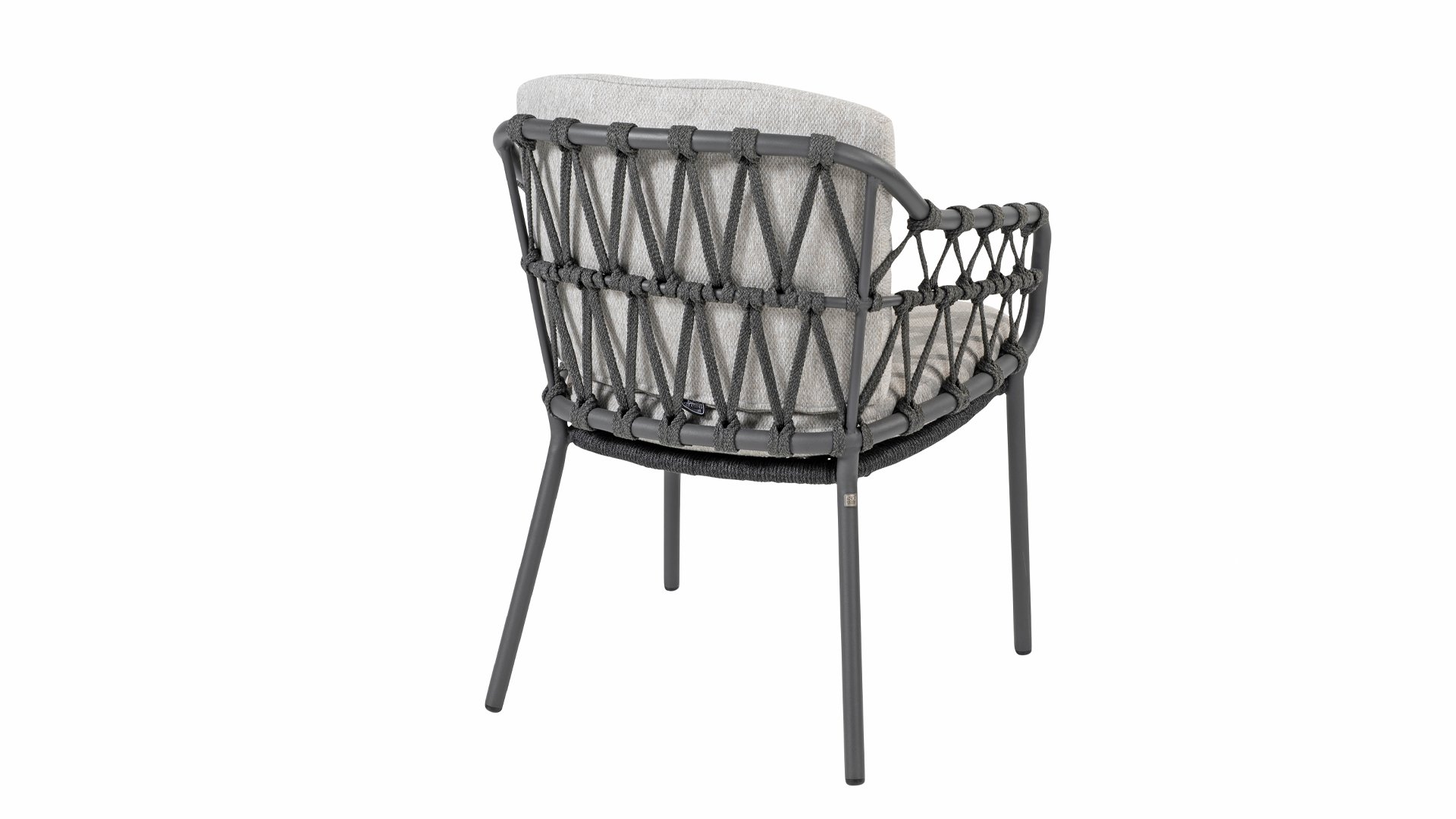 Das Calpi Dining von 4 Seasons Outdoor hat ein zeitgemäßes Design und verleiht jeder Terrasse den hochwertigen Look, den Sie suchen. Die breiten Seilpartien sind auf originelle Weise gewebt und verleihen dem Calpi einen offenen Charakter. Der Calpi wird mit einem Sitz- und Rückenkissen aus wetterfestem Stoff geliefert. Dieser Stoff wirkt wasser- und schmutzabweisend und ist somit widerstandsfähig gegen viele Witterungseinflüsse.
