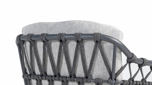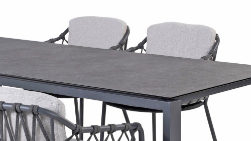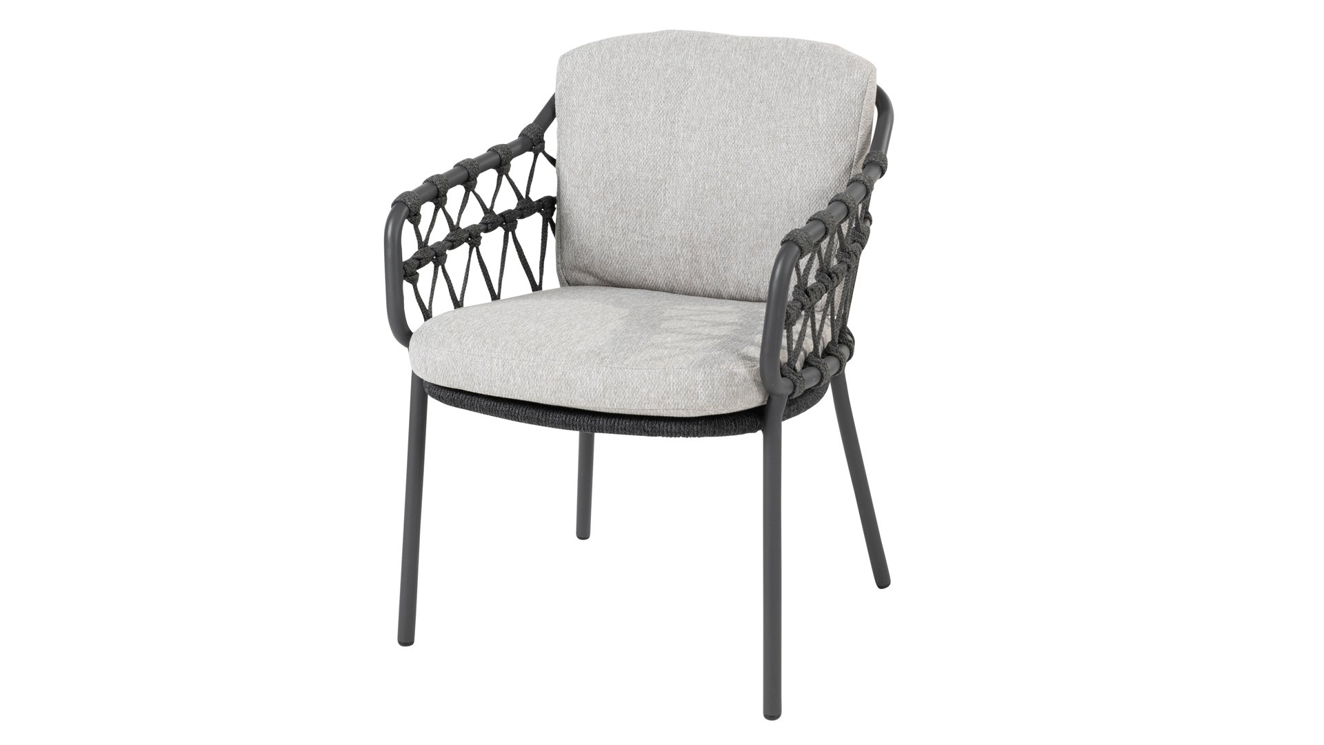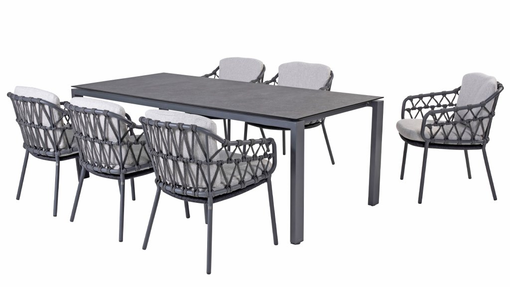 Das Calpi Dining von 4 Seasons Outdoor hat ein zeitgemäßes Design und verleiht jeder Terrasse den hochwertigen Look, den Sie suchen. Die breiten Seilpartien sind auf originelle Weise gewebt und verleihen dem Calpi einen offenen Charakter. Der Calpi wird mit einem Sitz- und Rückenkissen aus wetterfestem Stoff geliefert. Dieser Stoff wirkt wasser- und schmutzabweisend und ist somit widerstandsfähig gegen viele Witterungseinflüsse.