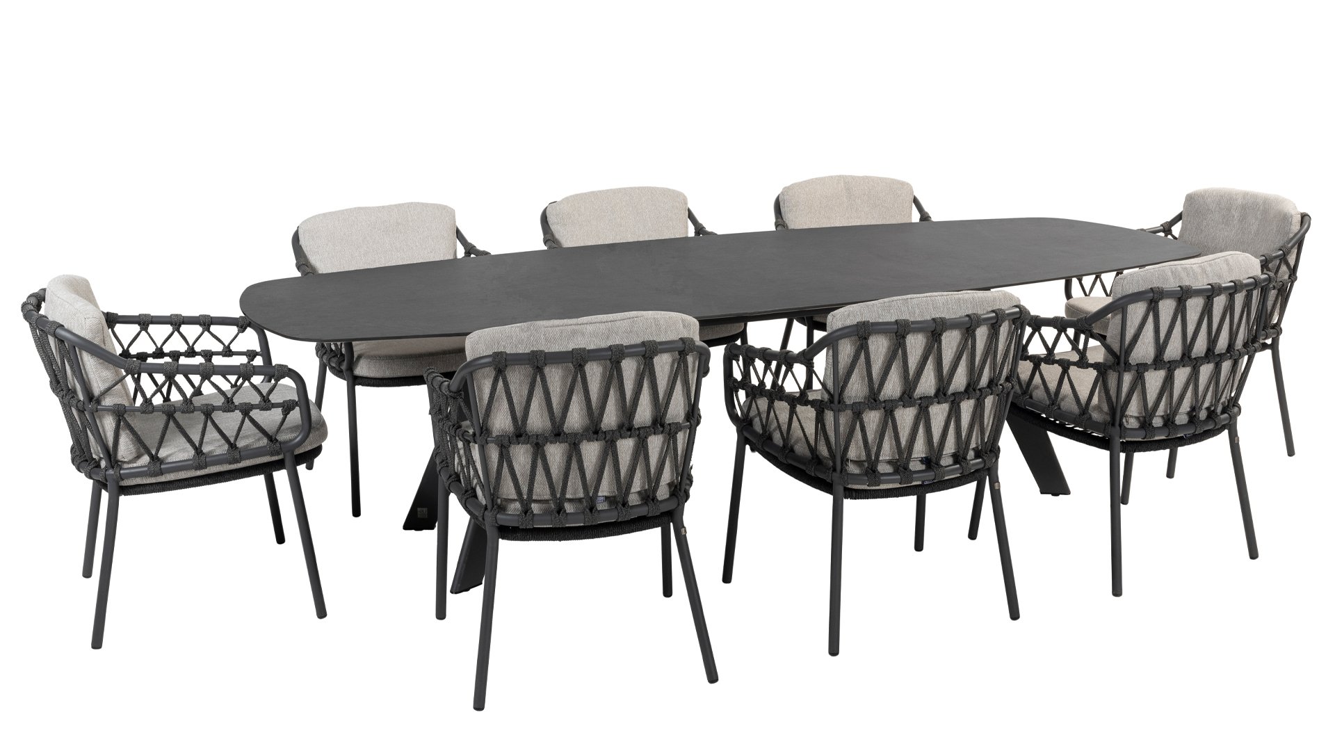 Das Calpi Dining von 4 Seasons Outdoor hat ein zeitgemäßes Design und verleiht jeder Terrasse den hochwertigen Look, den Sie suchen. Die breiten Seilpartien sind auf originelle Weise gewebt und verleihen dem Calpi einen offenen Charakter. Der Calpi wird mit einem Sitz- und Rückenkissen aus wetterfestem Stoff geliefert. Dieser Stoff wirkt wasser- und schmutzabweisend und ist somit widerstandsfähig gegen viele Witterungseinflüsse. Die Calpi-Serie ist eine komplette Familie innerhalb der wunderschönen Kollektion von 4 Seasons Outdoor. Auf diese Weise können Sie ein Loungegruppe und/oder ein Low dining Esstisch Set im gleichen Stil kombinieren.