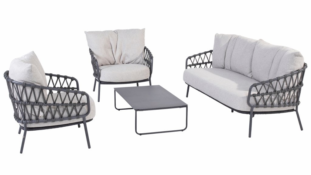 Die Calpi Lounge-Serie von 4 Seasons Outdoor, verfügbar im Anthrazit und Latte. Es hat ein zeitgemäßes Design und verleiht jeder Terrasse den Premium-Look, den Sie suchen. Die breiten Seilteile sind auf originelle Weise geflochten und verleihen dem Calpi einen offenen Charakter. Der 4Seasons Calpi wird mit Kissen aus Allwetterstoff geliefert. Dieser Stoff wirkt wasser- und schmutzabweisend und ist somit resistent gegen viele Witterungseinflüsse. Das Gestell besteht aus pulverbeschichtetem Edelstahl, wodurch sich das Calpi Lounge-Set sehr gut für die ganzjährige Verwendung im Freien eignet. Schauen Sie sich auch das 4SO Calpi Dining oder das 4SO Calpi Low Dining an!