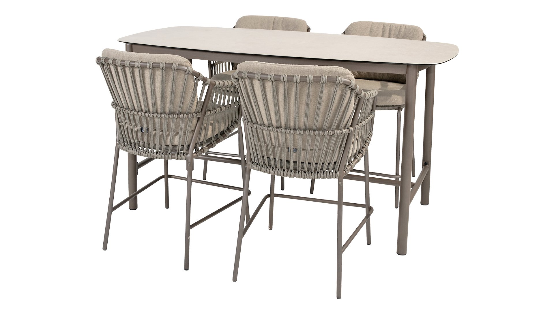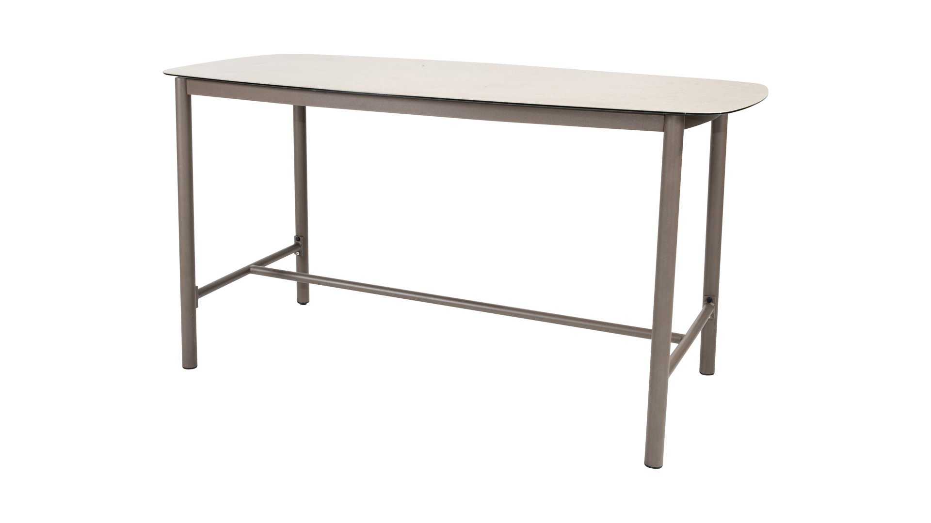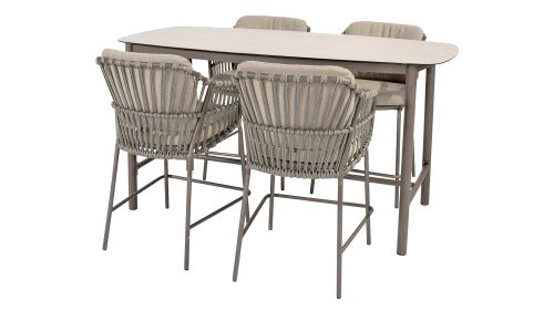 Der Taste Manolo High Dining Tisch bietet die perfekte Balance zwischen traditionellem Esszimmerstuhl und modernem Barhocker. Ein pflegeleichter Tisch mit modernem Look. Er zeichnet sich durch seine ovale Tischplatte aus glasbedruckter Keramik aus, die ihn ganzjährig im Freien stehen lässt.