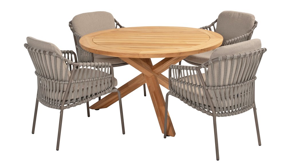 Diesen Tisch können Sie getrost als das Highlight der Kollektion bezeichnen. Das hochwertige Teakholz in Kombination mit dem schönen Kreuzbein machen diesen Taste by 4Seasons Prado 130cm Tisch zu einem Schmuckstück. Mit fast jedem Esszimmerstuhl aus unserer Kollektion ist für jeden etwas dabei. Kann mit Prado Lazy Susan kombiniert werden und ist auch Verfügbar mit Anthrazit Gestell Taste 4Seasons Prado 130 Anthrazit oder Latte Taste 4Seasons Prado 130 Latte.