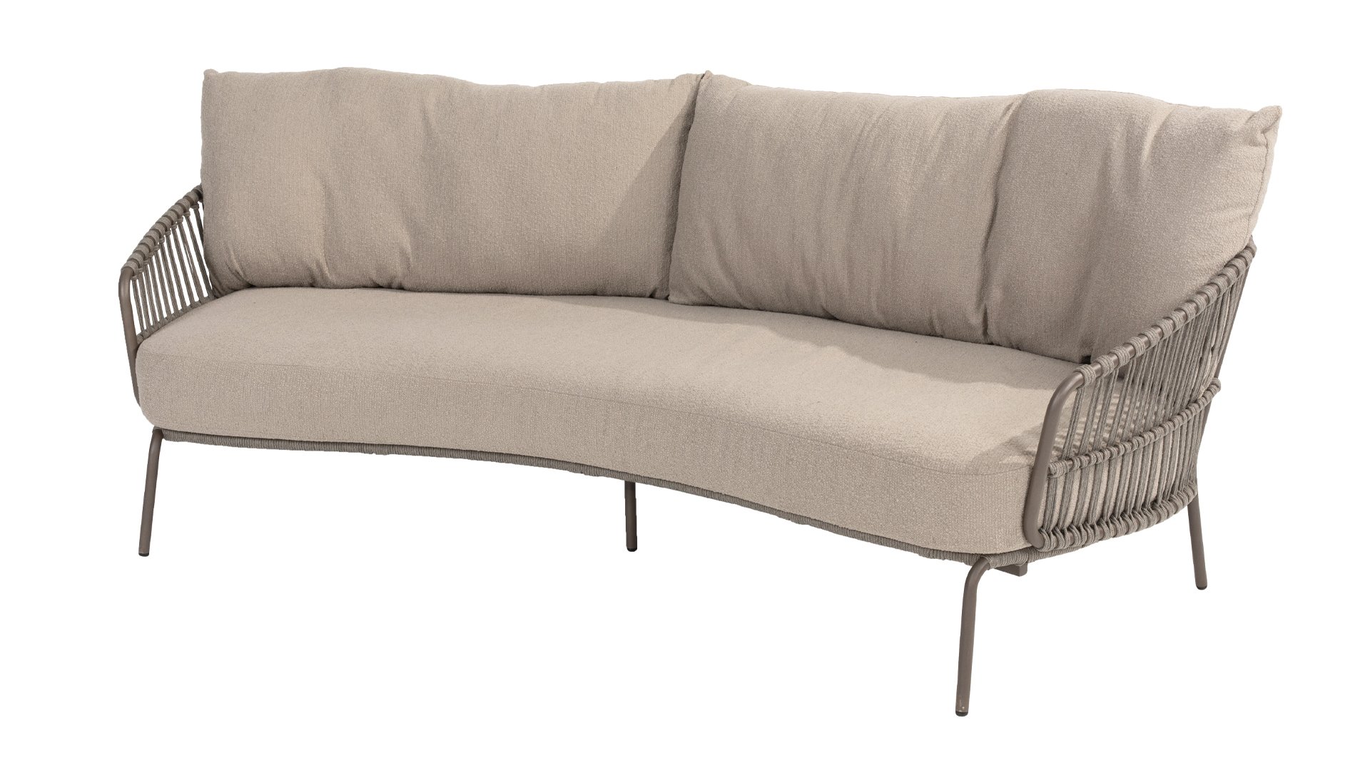 Erleben Sie den ultimativen Lounge-Komfort mit dem 4 Seasons Capalbio Sofa. Dieser Sofaist so konzipiert, dass Sie in den extra dicken Kissen aus weichem Bouclé-Stoff träumen können. Das moderne Design mit seinen eleganten Kurven und offenen Seilmustern verleiht jedem Garten eine stilvolle Note.