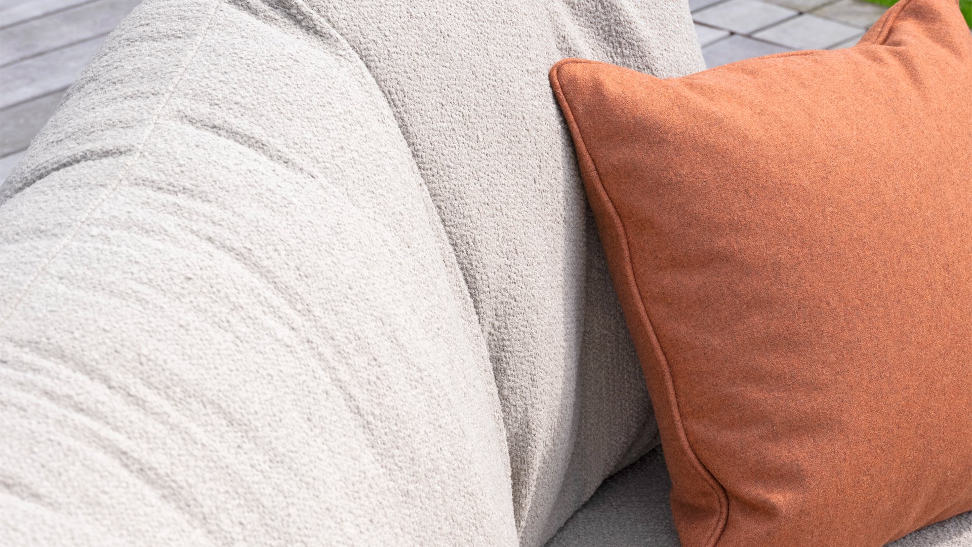 Olefin Kissen fühlen sich komfortabel an, fast so wie das Sofa oder die Stühle aus Innenbereichen. Dies ist der Fall, weil fast alle unsere Kissen mit Olefin-Stoff bezogen sind. Dieser Stoff besitzt verschiedene, einzigartige Eigenschaften. Der Rohstoff für die Olefinherstellung ist Öl. Dazu wird bereits in einem frühen Stadium Farbstoff gegeben, sodass sich dieser im Kern befindet. Dadurch ist der Stoff so farbecht, Uv-beständig und wasserabweisend. Dadurch wird Olefin beispielsweise auch für technische Sportbekleidung und in der Autobranche verwendet.