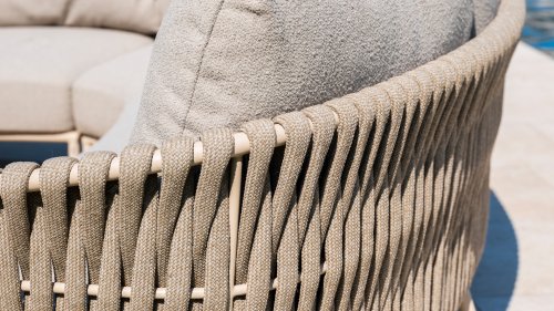 Dieses wunderschöne Material eignet sich perfekt für den Außenbereich, denn Taste Rope ist nicht nur eine normale Spitze, an der Sie Ihre Schuhe binden können. Taste verwendet ein sehr hochwertiges Faser aus 100% SDP (Slution Dyed Polypropylen). Dieses Material ist extrem stark und hat einen sehr geringen Stretchanteil. Polypropylen ist auf Ölbasis, so dass Schmutz und Verunreinigungen, genau wie unsere Kissen, kaum eindringen können. Taste bietet exklusive Designs mit handgeflochtenen Geflechtmustern und -techniken.