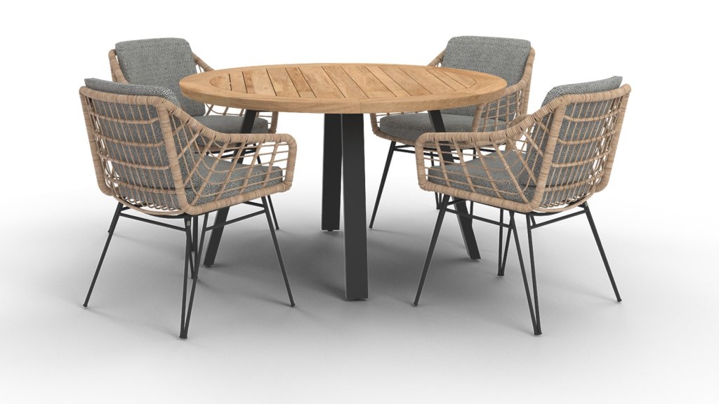 Haarnadelbeine und eine offene Flechtstruktur sind Merkmale des 4 Seasons Cottage, die diesen Esszimmerstuhl retro und stilvoll aussehen lassen. Da hierfür die witterungsbeständigsten Materialien verwendet werden, ist der Cottage Esszimmerstuhl für viele Jahre ein Statement in Ihrem Garten. Das Design des 4 Seasons Cottage orientiert sich an den früheren Jahren, hat aber den Komfort und die Nachhaltigkeit von heute. Ein moderner Stuhl im Retro-Look, angelehnt an den Landhausstil eines englischen Landhauses.