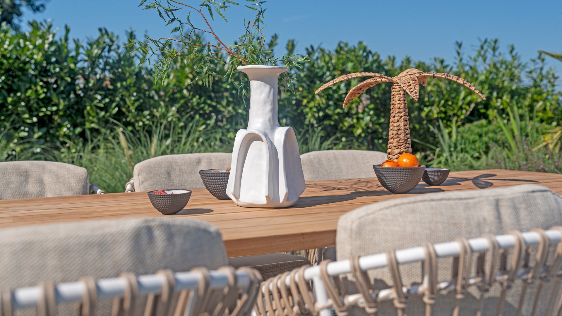 Keramik-Tische erfordern keine aufwändige Pflege. Wein-, Marmeladen- oder Fettflecke verschwinden im Handumdrehen mit Hilfe eines Schwamms oder einer Bürste und etwas Seifenwasser. Auch die im Haushalt verwendeten Säuren hinterlassen keine Spuren. Aber Keramik lässt sich nicht nur leicht reinigen, sondern ist auch ein hygienisches Material. Da es geschmacks- und geruchsneutral ist, können Sie Lebensmittel direkt auf die Keramik-Tischplatte legen. Bitte beachten Sie:Verwenden Sie zur Reinigung Ihrer 4 Seasons Outdoor Gartenmöbel keinen Hochdruckreiniger oder aggressive Reinigungs- oder Bleichmittel. Das kann die Beschichtung dauerhaft beschädigen. Auch können sich dadurch weiße Flecken bilden. Um Schäden vorzubeugen, seien Sie auch vorsichtig mit Feuer, heißen Gegenständen und hartnäckigen Flüssigkeiten wie Öl, Wein oder Ketchup. Um bleibende Flecken oder Verfärbungen zu vermeiden, decken Sie Ihre Möbel nicht dauerhaft ab und stellen auch keine Dekoration dauerhaft auf die Möbel.