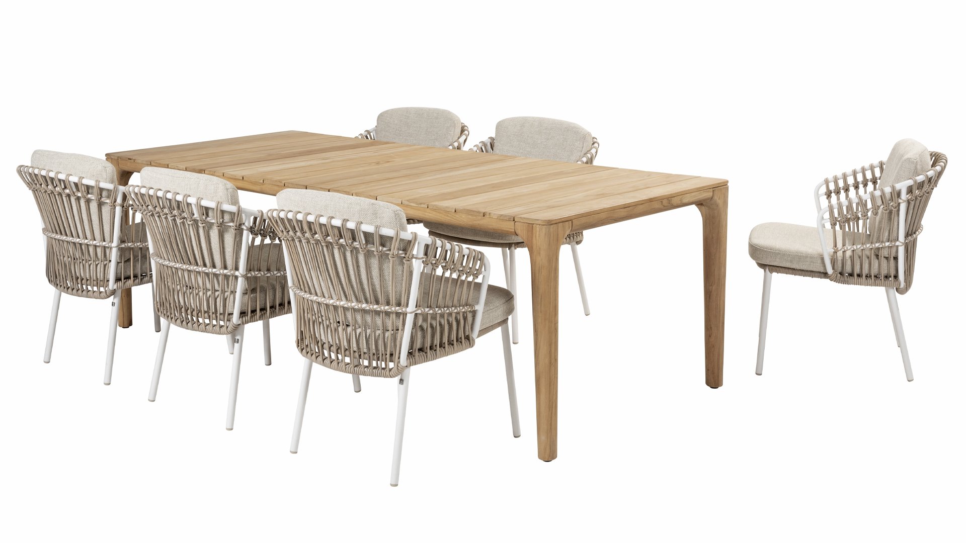 Gartenmöbel aus Teakholz bieten einen atemberaubenden Blick.Teakholz eignet sich besonders gut für den Einsatz im Außenbereich. Es ist resistent gegen Schädlinge und Pilze und widerstandsfähig gegen Sonne, Regen und Schnee. Mit der Zeit entwickelt das Teakholz eine silbergraue Patina. Gartenmöbel aus Teakholz bieten einen atemberaubenden Blick. Darüber hinaus ist es starkes Material und erfordert nur wenig Wartung. Wer die ursprüngliche Farbe des Teakholzes bevorzugt, kann durch regelmäßiges benutzen unser Pflegemittel ganz einfach das Vergrauen des Holzes verhindern.Darüber hinaus können Sie Teak mit grüner Seife reinigen. Durch Temperaturunterschiede und durch den Wechsel von Feuchtigkeit und Trockenheit können kleine Haarrisse entstehen. Es ist üblich, dass Man in dies Unvollkommenheiten findet, diese Unregelmäßigkeiten sind kennzeichnend für dieses Produkt. Diese Unregelmäßigkeiten können nie einen Anlass zu Reklamation, Garantie oder Claim formen. Es betrifft eine Unterschrift von Originalität!  Wir gewähren Garantie auf alle Produktions- und Konstruktionsfehler. Die Wirkung von Teakholz ist nicht enthalten. Wenn Sie sich für Teakholz entscheiden, erwarten wir, dass Sie diese Eigenschaften zu schätzen wissen. Eventuell auftretende Haarrisse, Äste im Teakholz und raue Oberflächen im Laufe der Zeit fallen nicht unter unsere Garantie. Diese Eigenschaften verleihen dem Teakholz seinen eigenen Charakter und sind Teil der Optik. Seien Sie vorsichtig mit einem Blumentopf oder einer Vase auf Ihrem Gartentisch aus Teakholz, da dies zu hartnäckigen Kreisen oder Farbunterschieden führen kann.