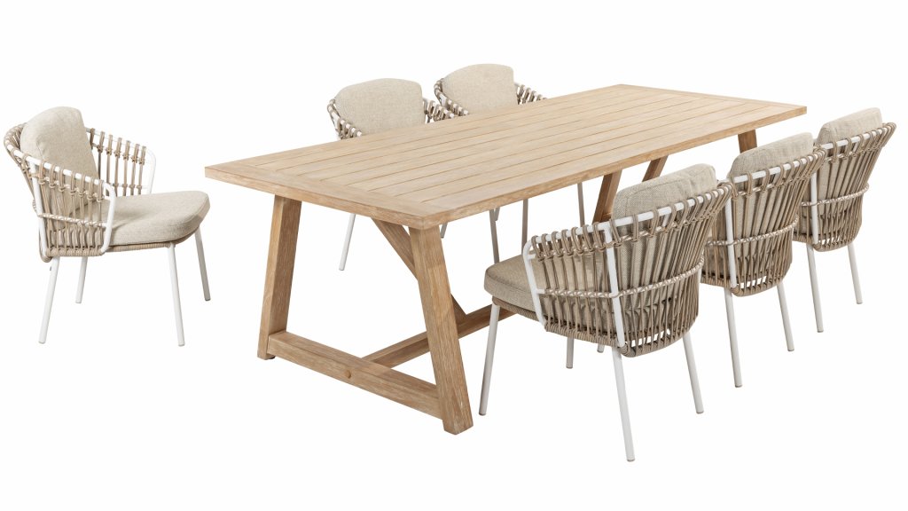Gartenmöbel aus Teakholz bieten einen atemberaubenden Blick.Teakholz eignet sich besonders gut für den Einsatz im Außenbereich. Es ist resistent gegen Schädlinge und Pilze und widerstandsfähig gegen Sonne, Regen und Schnee. Mit der Zeit entwickelt das Teakholz eine silbergraue Patina. Gartenmöbel aus Teakholz bieten einen atemberaubenden Blick. Darüber hinaus ist es starkes Material und erfordert nur wenig Wartung. Wer die ursprüngliche Farbe des Teakholzes bevorzugt, kann durch regelmäßiges benutzen unser Pflegemittel ganz einfach das Vergrauen des Holzes verhindern.Darüber hinaus können Sie Teak mit grüner Seife reinigen. Durch Temperaturunterschiede und durch den Wechsel von Feuchtigkeit und Trockenheit können kleine Haarrisse entstehen. Es ist üblich, dass Man in dies Unvollkommenheiten findet, diese Unregelmäßigkeiten sind kennzeichnend für dieses Produkt. Diese Unregelmäßigkeiten können nie einen Anlass zu Reklamation, Garantie oder Claim formen. Es betrifft eine Unterschrift von Originalität! Wir gewähren Garantie auf alle Produktions- und Konstruktionsfehler. Die Wirkung von Teakholz ist nicht enthalten. Wenn Sie sich für Teakholz entscheiden, erwarten wir, dass Sie diese Eigenschaften zu schätzen wissen. Eventuell auftretende Haarrisse, Äste im Teakholz und raue Oberflächen im Laufe der Zeit fallen nicht unter unsere Garantie. Diese Eigenschaften verleihen dem Teakholz seinen eigenen Charakter und sind Teil der Optik. Seien Sie vorsichtig mit einem Blumentopf oder einer Vase auf Ihrem Gartentisch aus Teakholz, da dies zu hartnäckigen Kreisen oder Farbunterschieden führen kann.