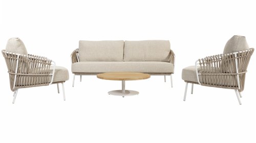 Erleben Sie ultimativen Komfort und moderne Eleganz mit dem 4 Seasons Outdoor Dalias Loungegruppe. Dieses Set wird mit Kissen geliefert und verfügt über ein raffiniertes, taupefarbenes Korbgeflecht und einen eleganten weißen Edelstahlrahmen. Hier sind einige Eigenschaften, die dieses Lounge-Set zu einem absoluten Favoriten machen: 5 Jahre Garantie und 10 Jahre Garantie auf Korbgeflecht, Hularo-Geflecht: hochwertiges Korbgeflecht, äußerst bequem, moderne Optik, auffälliges Design und wetterfest. Auch als Dining- und Low-Dining-Set erhältlich, sehen Sie sie sich hier an: 4SO Dalias Dining- und 4SO Dalias Low Dining-Set.