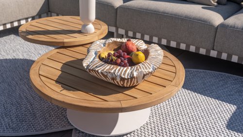 Entdecken Sie die Schönheit und Vielseitigkeit des runden Couchtischs 4 Seasons Outdoor Volta mit seiner wunderschönen Teakholz-Tischplatte und dem Edelstahlrahmen. Die Tischserie Volta besteht aus 3 Größen und 3 Farben Anthrazit, Weiß, Latte. Dieser Tisch verleiht Ihrem Außenbereich einen Hauch natürlicher Eleganz und wurde mit Liebe zum Detail entworfen.