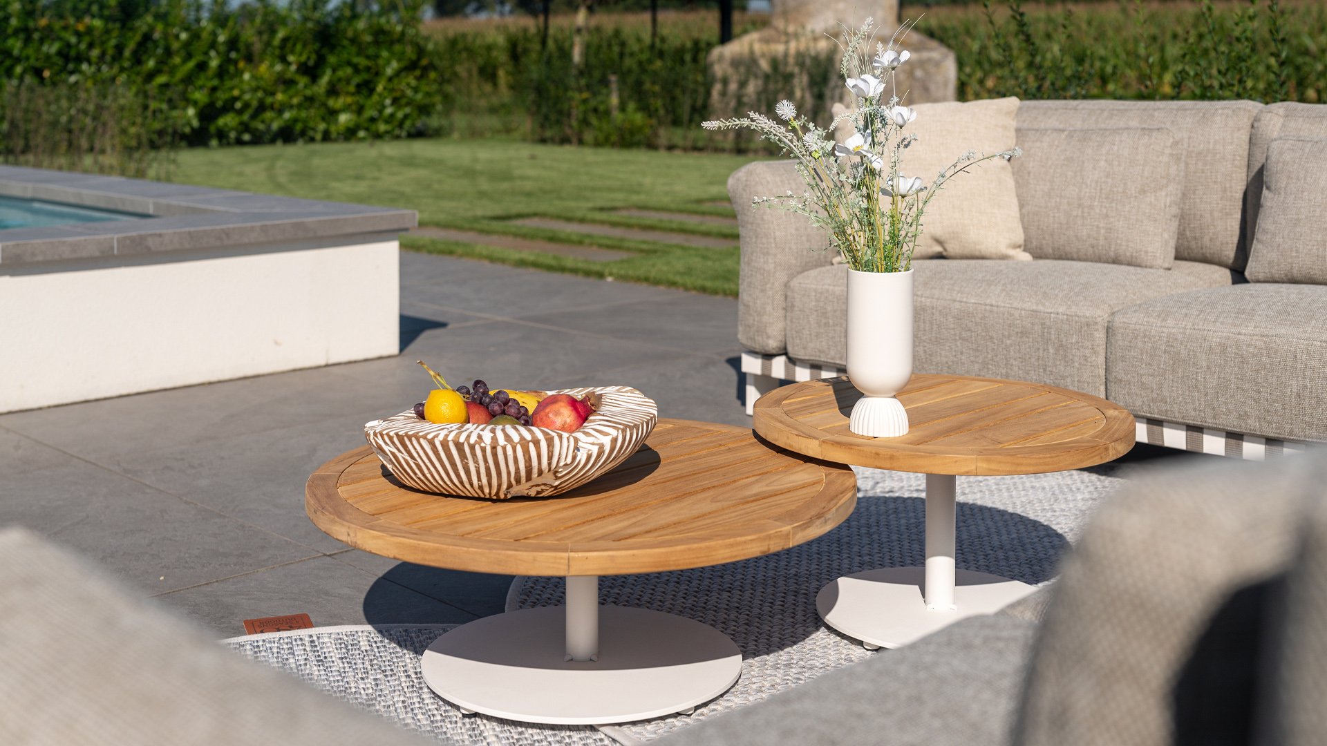 1 x 4 Seasons Outdoor Volta Kaffeetisch Teak/Alu white Ø 80xH30cm