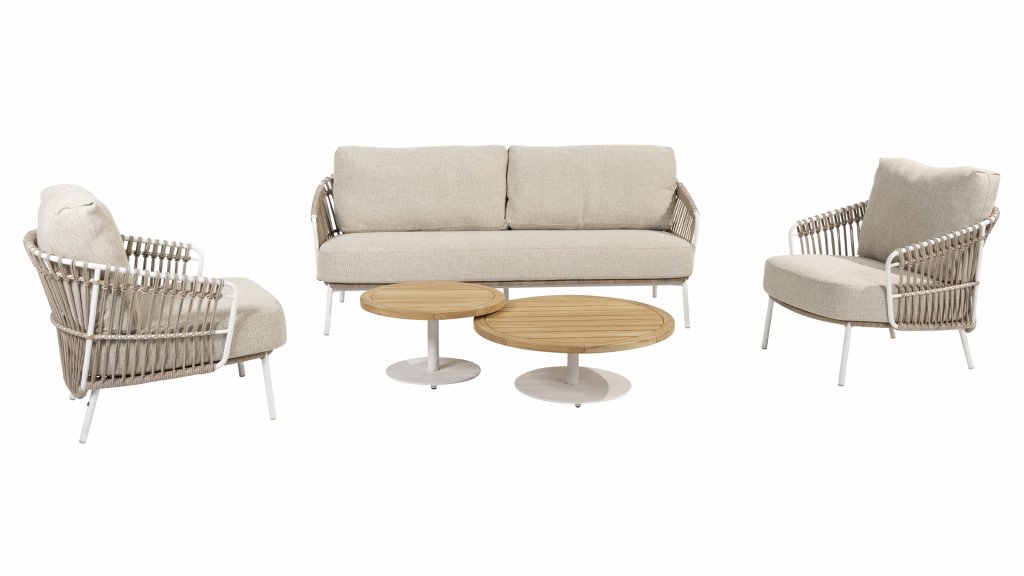 Erleben Sie ultimativen Komfort und moderne Eleganz mit dem 4 Seasons Outdoor Dalias Loungegruppe. Dieses Set wird mit Kissen geliefert und verfügt über ein raffiniertes, taupefarbenes Korbgeflecht und einen eleganten weißen Edelstahlrahmen. Hier sind einige Eigenschaften, die dieses Lounge-Set zu einem absoluten Favoriten machen: 5 Jahre Garantie und 10 Jahre Garantie auf Korbgeflecht, Hularo-Geflecht: hochwertiges Korbgeflecht, äußerst bequem, moderne Optik, auffälliges Design und wetterfest. Auch als Dining- und Low-Dining-Set erhältlich, sehen Sie sie sich hier an: 4SO Dalias Dining- und 4SO Dalias Low Dining-Set.