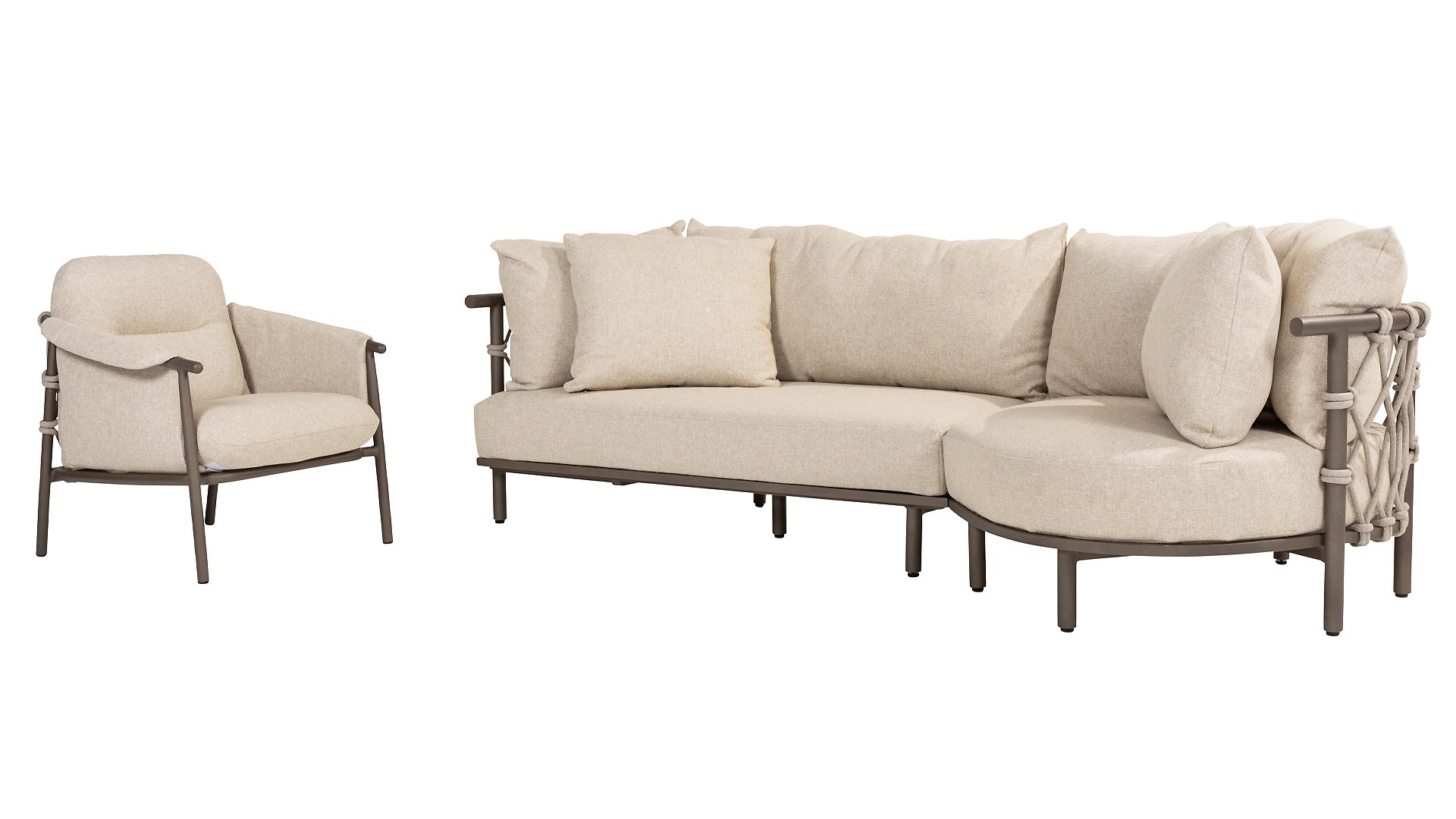 Erleben Sie ultimativen Komfort und stilvolle Eleganz mit der Ezra Loungesets von 4 Seasons Outdoor. Dieses schöne Lounge-Set in der eleganten Terre-Farbe hat ein wunderschönes Design, das perfekt zu modernen Gärten passt. Der vollständig aus Aluminium gefertigte Rahmen ist mit erhabenen Kurven gestaltet, während die dicken Lounge-Kissen für einen wunderbaren Kontrast und optimalen Komfort sorgen. In Kombination mit dem dicken Seil ein wunderschönes Set!