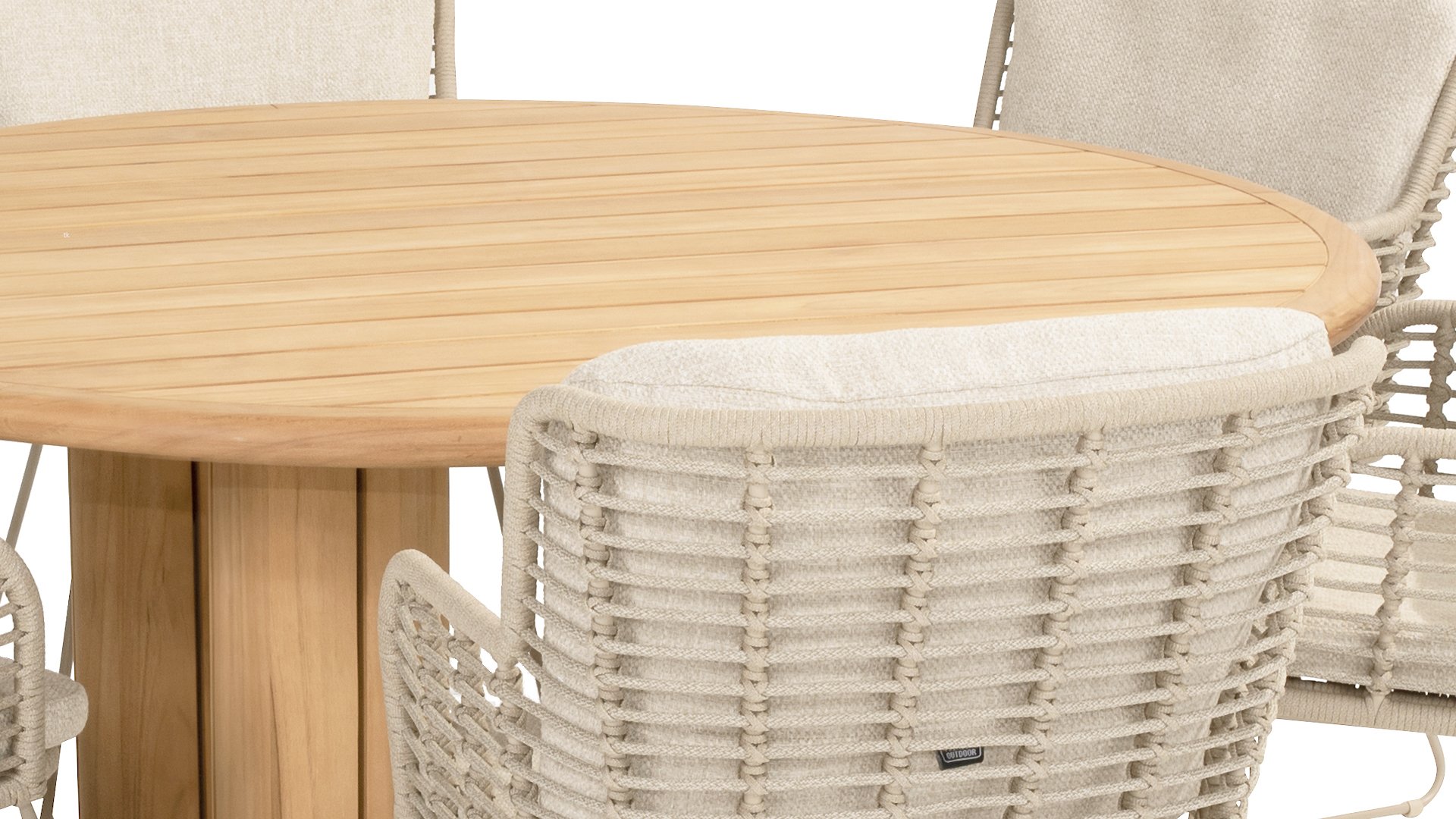 Dieses wunderschöne Material eignet sich perfekt für den Außenbereich, denn Rope ist nicht nur eine normale Spitze, an der Sie Ihre Schuhe binden können. Unsere runden Fäden sind mit einem Kunststoffkern versehen. Diese Basis aus Polypropylen sorgt dafür, dass sich das Rope minimal dehnt und sie nimmt außerdem keine Feuchtigkeit auf. Die Umhüllung besteht aus Acrylstoff, der mit dem wetterfesten Stoff unserer Gartenkissen vergleichbar ist. Diese Umhüllung fühlt sich weich an und ist sehr wasserabweisend, UV-beständig und farbecht. Die flachen Rope-Varianten besitzen den gleichen wetterfesten Materialmix, doch das Polypropylen-Material wurde hier mit dem Acryl-Stoff verwebt. Durch diese Technik besitzt das flache Rope die gleichen Eigenschaften, hat jedoch eine ganz andere Ausstrahlung.