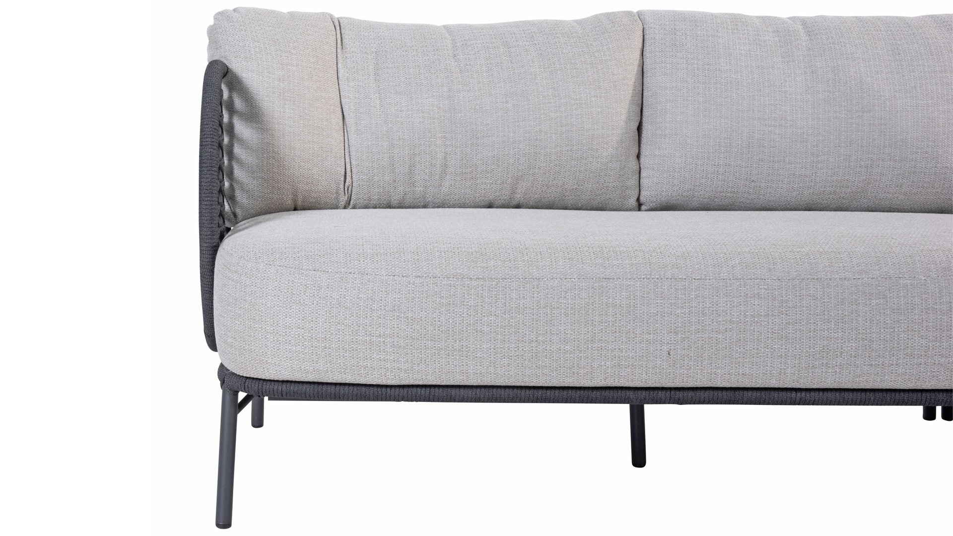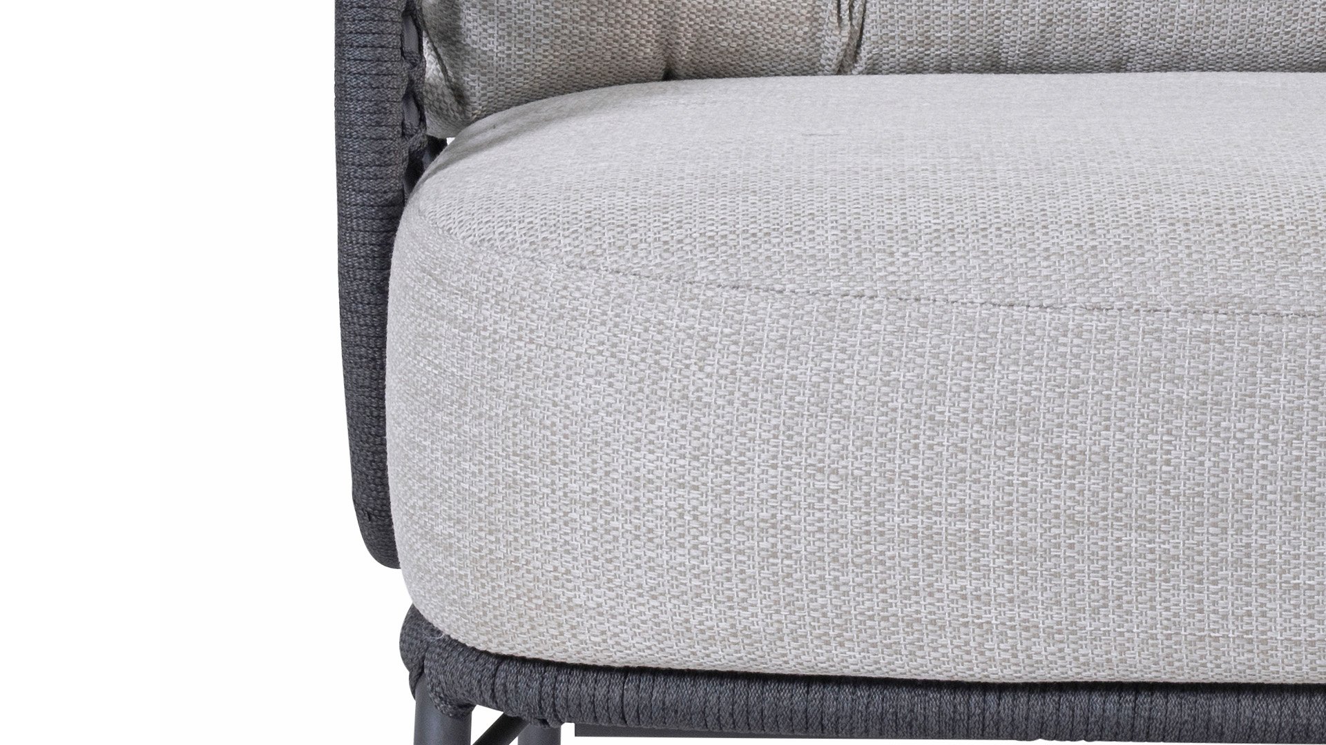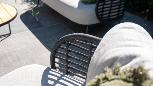 Dieses wunderschöne Material eignet sich perfekt für den Außenbereich, denn Rope ist nicht nur eine normale Spitze, an der Sie Ihre Schuhe binden können. Unsere runden Fäden sind mit einem Kunststoffkern versehen. Diese Basis aus Polypropylen sorgt dafür, dass sich das Rope minimal dehnt und sie nimmt außerdem keine Feuchtigkeit auf. Die Umhüllung besteht aus Acrylstoff, der mit dem wetterfesten Stoff unserer Gartenkissen vergleichbar ist. Diese Umhüllung fühlt sich weich an und ist sehr wasserabweisend, UV-beständig und farbecht. Die flachen Rope-Varianten besitzen den gleichen wetterfesten Materialmix, doch das Polypropylen-Material wurde hier mit dem Acryl-Stoff verwebt. Durch diese Technik besitzt das flache Rope die gleichen Eigenschaften, hat jedoch eine ganz andere Ausstrahlung.