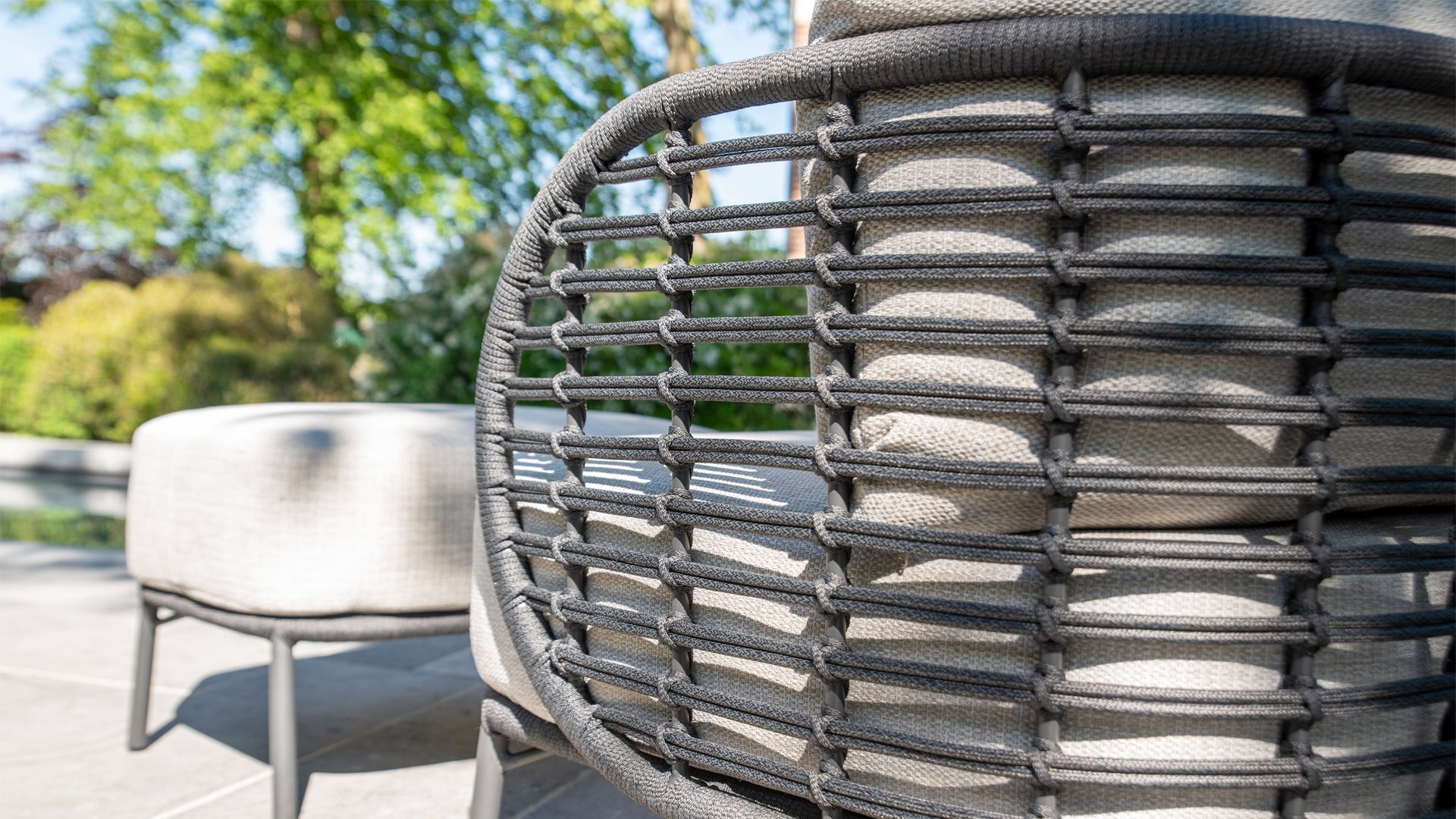 Dieses wunderschöne Material eignet sich perfekt für den Außenbereich, denn Rope ist nicht nur eine normale Spitze, an der Sie Ihre Schuhe binden können. Unsere runden Fäden sind mit einem Kunststoffkern versehen. Diese Basis aus Polypropylen sorgt dafür, dass sich das Rope minimal dehnt und sie nimmt außerdem keine Feuchtigkeit auf. Die Umhüllung besteht aus Acrylstoff, der mit dem wetterfesten Stoff unserer Gartenkissen vergleichbar ist. Diese Umhüllung fühlt sich weich an und ist sehr wasserabweisend, UV-beständig und farbecht. Die flachen Rope-Varianten besitzen den gleichen wetterfesten Materialmix, doch das Polypropylen-Material wurde hier mit dem Acryl-Stoff verwebt. Durch diese Technik besitzt das flache Rope die gleichen Eigenschaften, hat jedoch eine ganz andere Ausstrahlung.