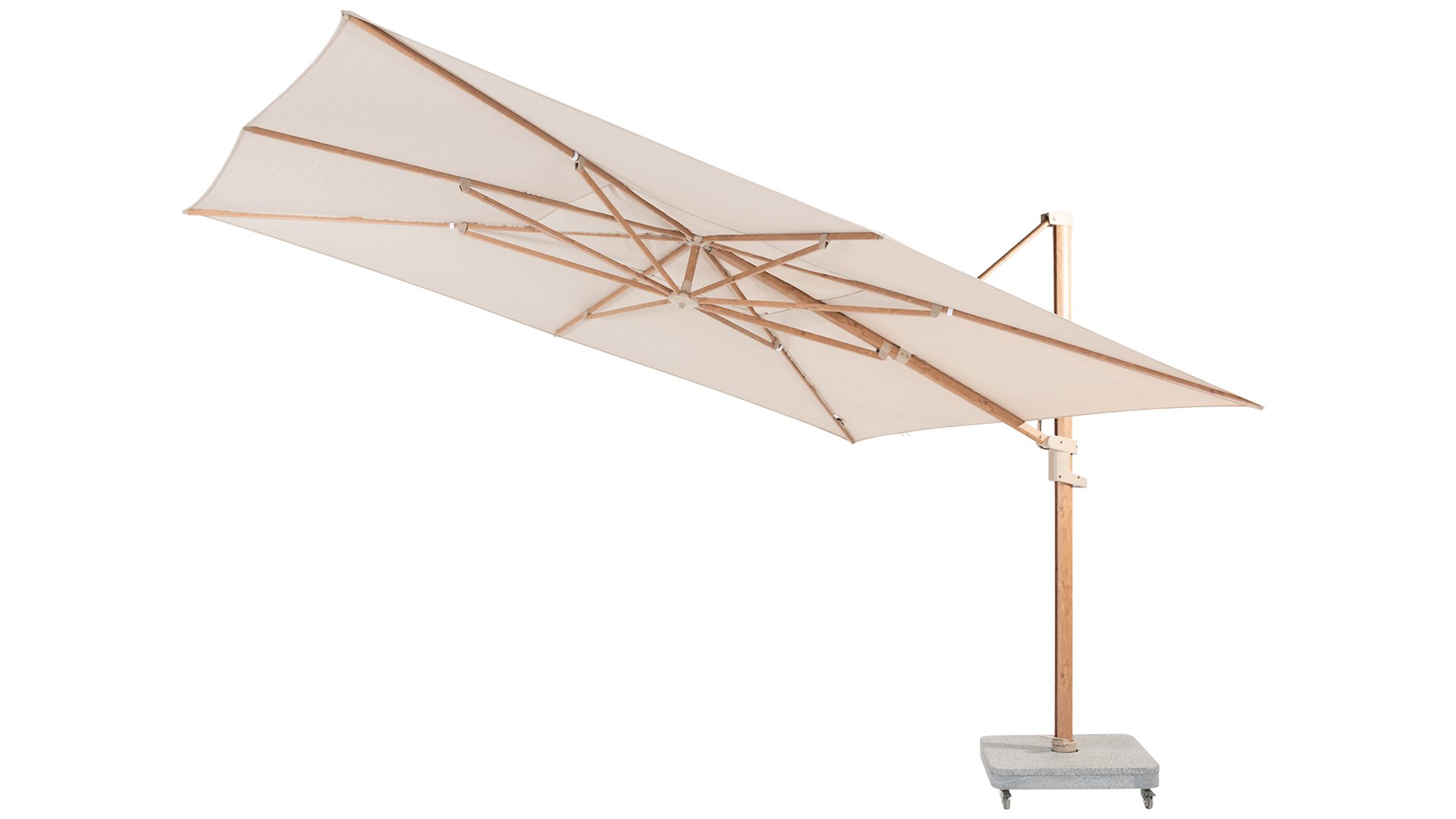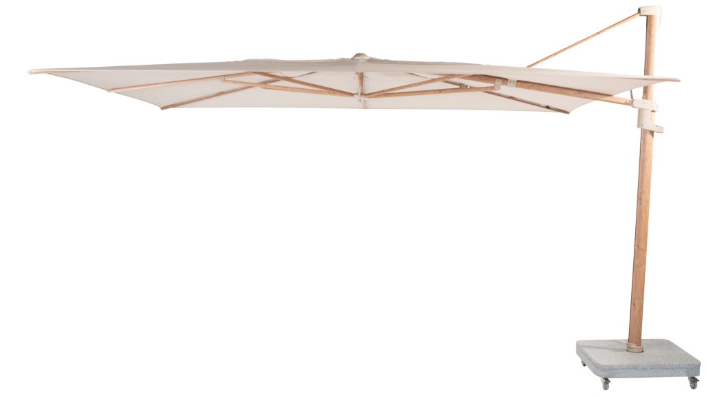 Der 4Seasons-Hängearmschirm ist inzwischen ein echter Klassiker. Dieser Schwebeschirm hat seine Qualität bereits bewiesen. Der Schirm ist nach hinten kippbar, um die tief stehende Sonne abzufangen. Der Schirm ist auch auf dem Sockel drehbar. Weitere Informationen finden Sie im Video. Standardmäßig 5 Jahre Garantie.
