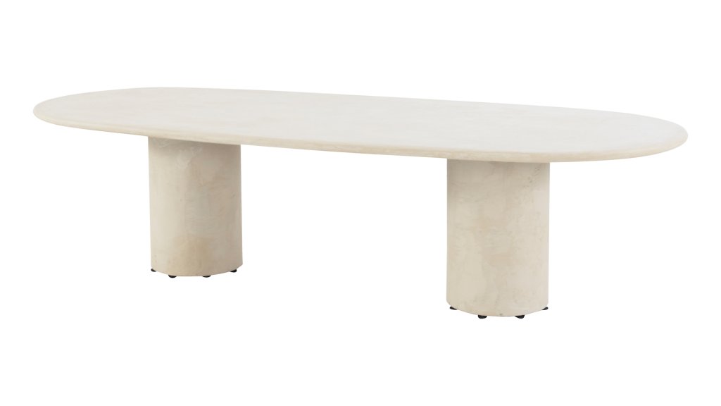Der Tisch ist in verschiedenen Größen erhältlich, sodass Sie immer den passenden Hampton für Ihren Außenbereich finden. Wählen Sie die runde Version mit Ø160cm für eine gemütliche Atmosphäre mit einem einzelnen, eleganten Mittelbein oder die großzügigen ovalen Versionen mit 240cm oder 300cm. Beide verfügen über zwei schlanke, vertikale Beine, die für Stabilität und ein markantes, geradliniges Design sorgen. Für alle, die ein entspannteres Essen bevorzugen, gibt es auch eine Low-Dining Version Ø160cm, ideal für entspannte Momente im Lounge-Stil.