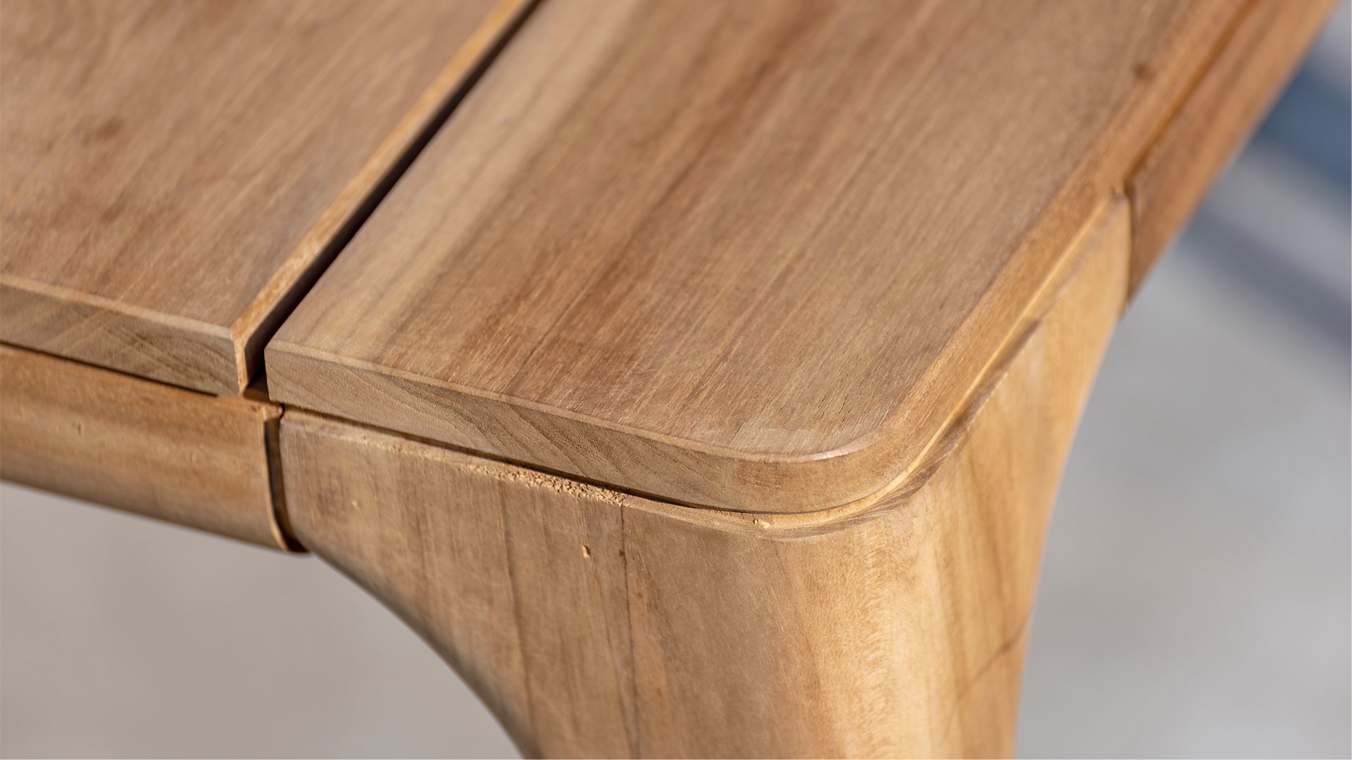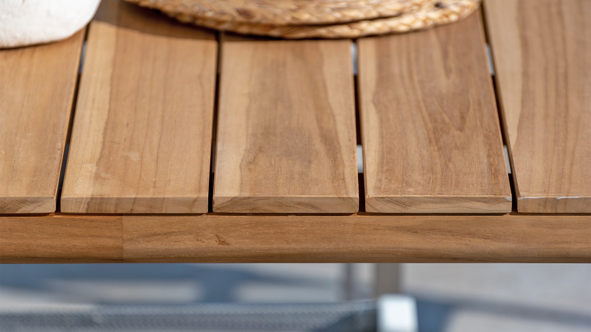 Gartenmöbel aus Teakholz bieten einen atemberaubenden Blick.Teakholz eignet sich besonders gut für den Einsatz im Außenbereich. Es ist resistent gegen Schädlinge und Pilze und widerstandsfähig gegen Sonne, Regen und Schnee. Mit der Zeit entwickelt das Teakholz eine silbergraue Patina. Gartenmöbel aus Teakholz bieten einen atemberaubenden Blick. Darüber hinaus ist es starkes Material und erfordert nur wenig Wartung. Wer die ursprüngliche Farbe des Teakholzes bevorzugt, kann durch regelmäßiges benutzen unser Pflegemittel ganz einfach das Vergrauen des Holzes verhindern.Darüber hinaus können Sie Teak mit grüner Seife reinigen. Durch Temperaturunterschiede und durch den Wechsel von Feuchtigkeit und Trockenheit können kleine Haarrisse entstehen. Es ist üblich, dass Man in dies Unvollkommenheiten findet, diese Unregelmäßigkeiten sind kennzeichnend für dieses Produkt. Diese Unregelmäßigkeiten können nie einen Anlass zu Reklamation, Garantie oder Claim formen. Es betrifft eine Unterschrift von Originalität! Wir gewähren Garantie auf alle Produktions- und Konstruktionsfehler. Die Wirkung von Teakholz ist nicht enthalten. Wenn Sie sich für Teakholz entscheiden, erwarten wir, dass Sie diese Eigenschaften zu schätzen wissen. Eventuell auftretende Haarrisse, Äste im Teakholz und raue Oberflächen im Laufe der Zeit fallen nicht unter unsere Garantie. Diese Eigenschaften verleihen dem Teakholz seinen eigenen Charakter und sind Teil der Optik. Seien Sie vorsichtig mit einem Blumentopf oder einer Vase auf Ihrem Gartentisch aus Teakholz, da dies zu hartnäckigen Kreisen oder Farbunterschieden führen kann.