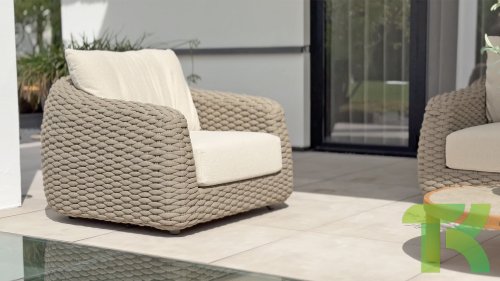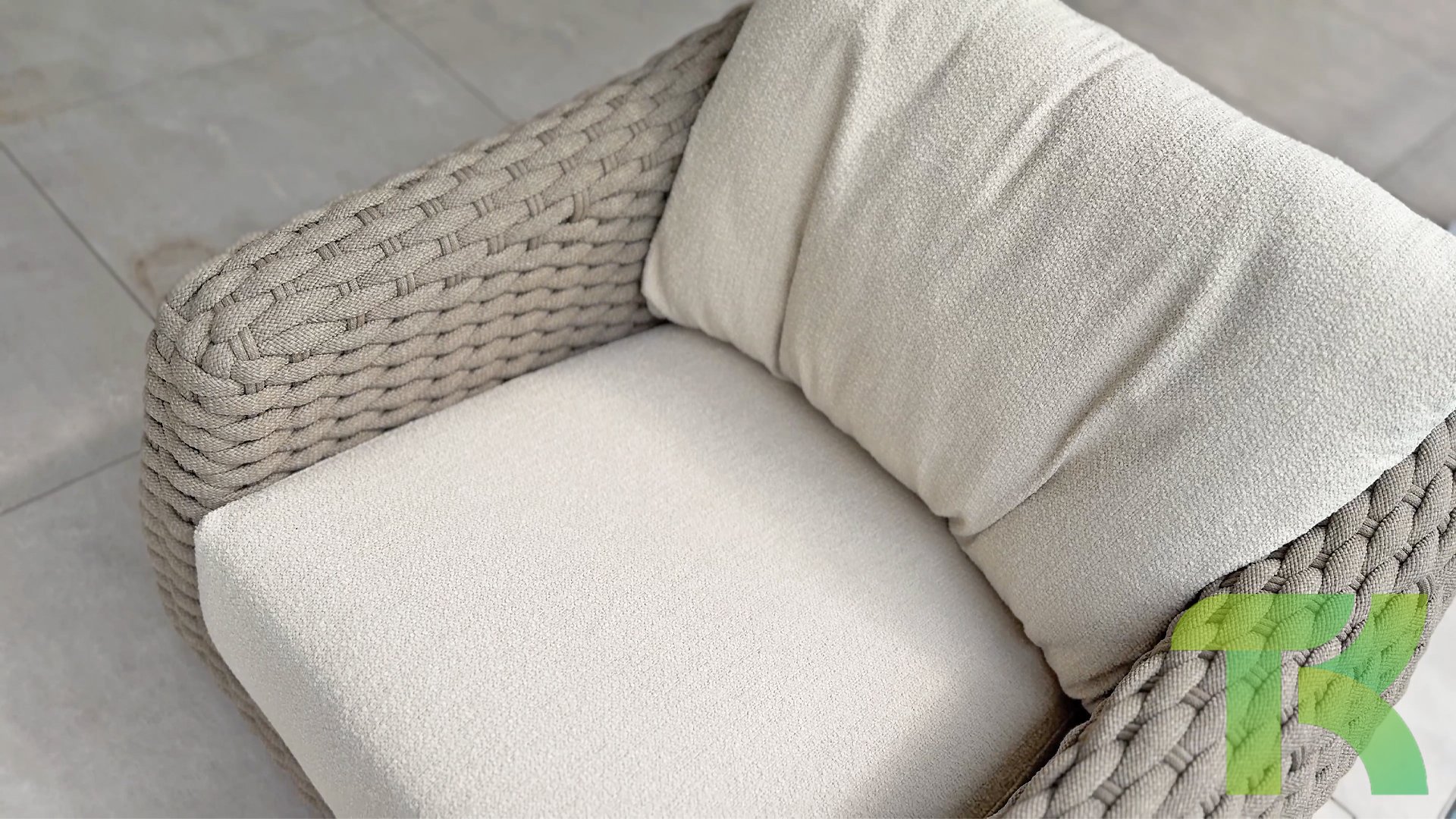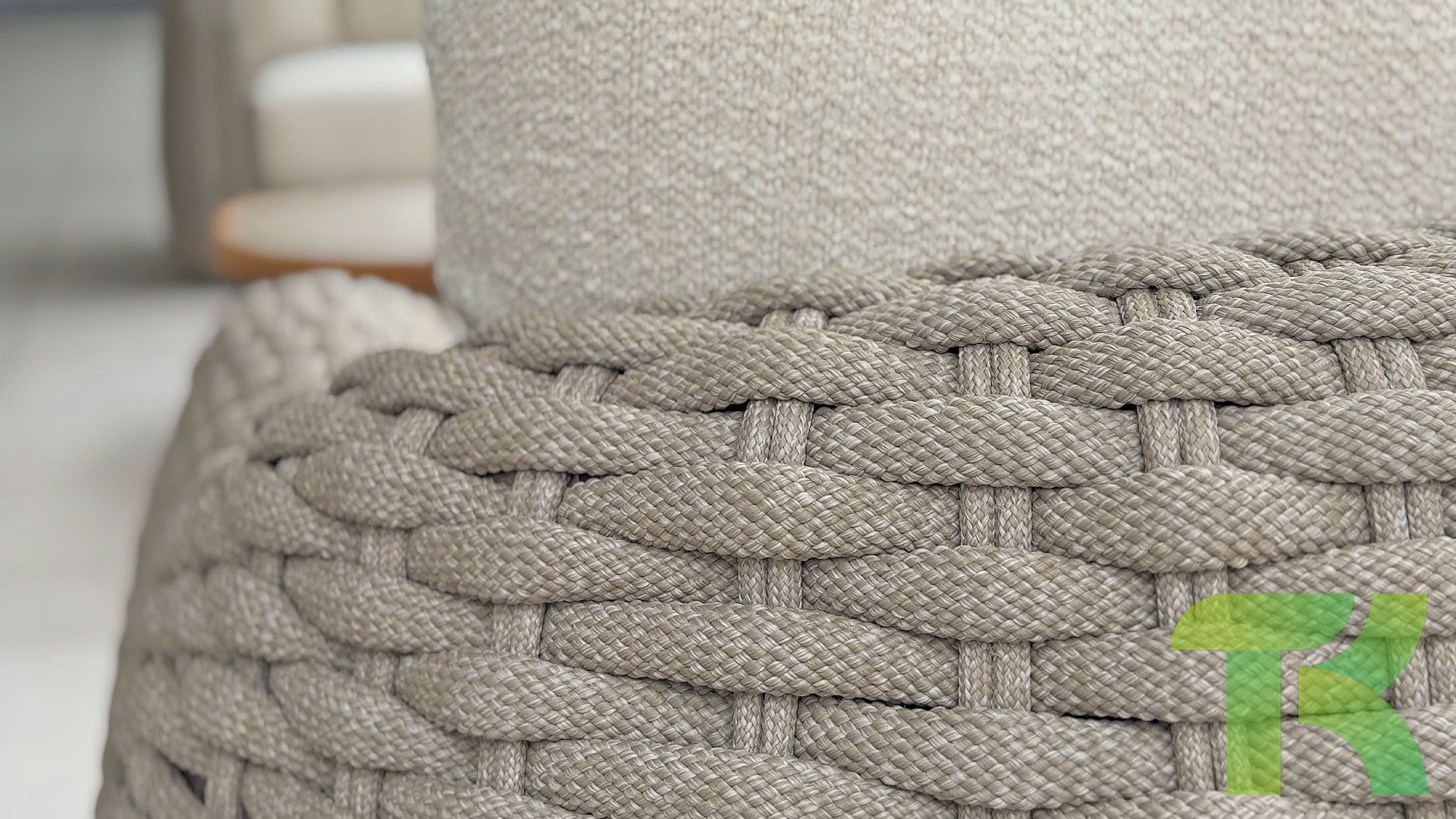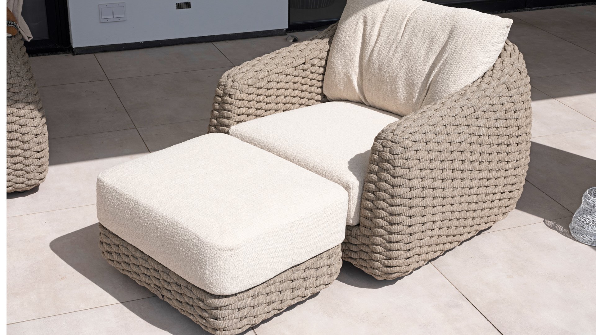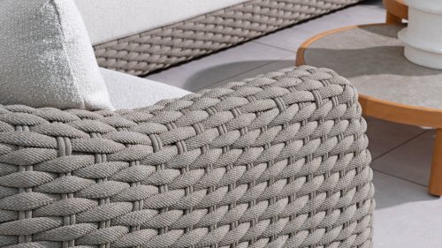 Dieses wunderschöne Material eignet sich perfekt für den Außenbereich, denn Rope ist nicht nur eine normale Spitze, an der Sie Ihre Schuhe binden können. Unsere runden Fäden sind mit einem Kunststoffkern versehen. Diese Basis aus Polypropylen sorgt dafür, dass sich das Rope minimal dehnt und sie nimmt außerdem keine Feuchtigkeit auf. Die Umhüllung besteht aus Acrylstoff, der mit dem wetterfesten Stoff unserer Gartenkissen vergleichbar ist. Diese Umhüllung fühlt sich weich an und ist sehr wasserabweisend, UV-beständig und farbecht. Die flachen Rope-Varianten besitzen den gleichen wetterfesten Materialmix, doch das Polypropylen-Material wurde hier mit dem Acryl-Stoff verwebt. Durch diese Technik besitzt das flache Rope die gleichen Eigenschaften, hat jedoch eine ganz andere Ausstrahlung.