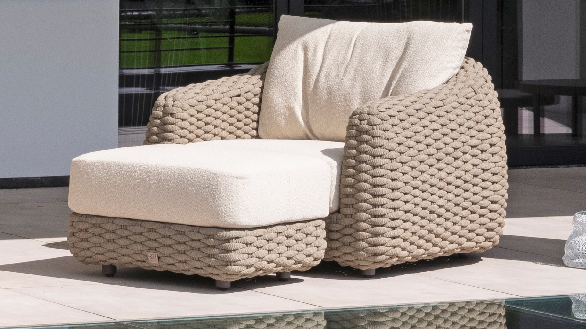 Dieses wunderschöne Material eignet sich perfekt für den Außenbereich, denn Rope ist nicht nur eine normale Spitze, an der Sie Ihre Schuhe binden können. Unsere runden Fäden sind mit einem Kunststoffkern versehen. Diese Basis aus Polypropylen sorgt dafür, dass sich das Rope minimal dehnt und sie nimmt außerdem keine Feuchtigkeit auf. Die Umhüllung besteht aus Acrylstoff, der mit dem wetterfesten Stoff unserer Gartenkissen vergleichbar ist. Diese Umhüllung fühlt sich weich an und ist sehr wasserabweisend, UV-beständig und farbecht. Die flachen Rope-Varianten besitzen den gleichen wetterfesten Materialmix, doch das Polypropylen-Material wurde hier mit dem Acryl-Stoff verwebt. Durch diese Technik besitzt das flache Rope die gleichen Eigenschaften, hat jedoch eine ganz andere Ausstrahlung.