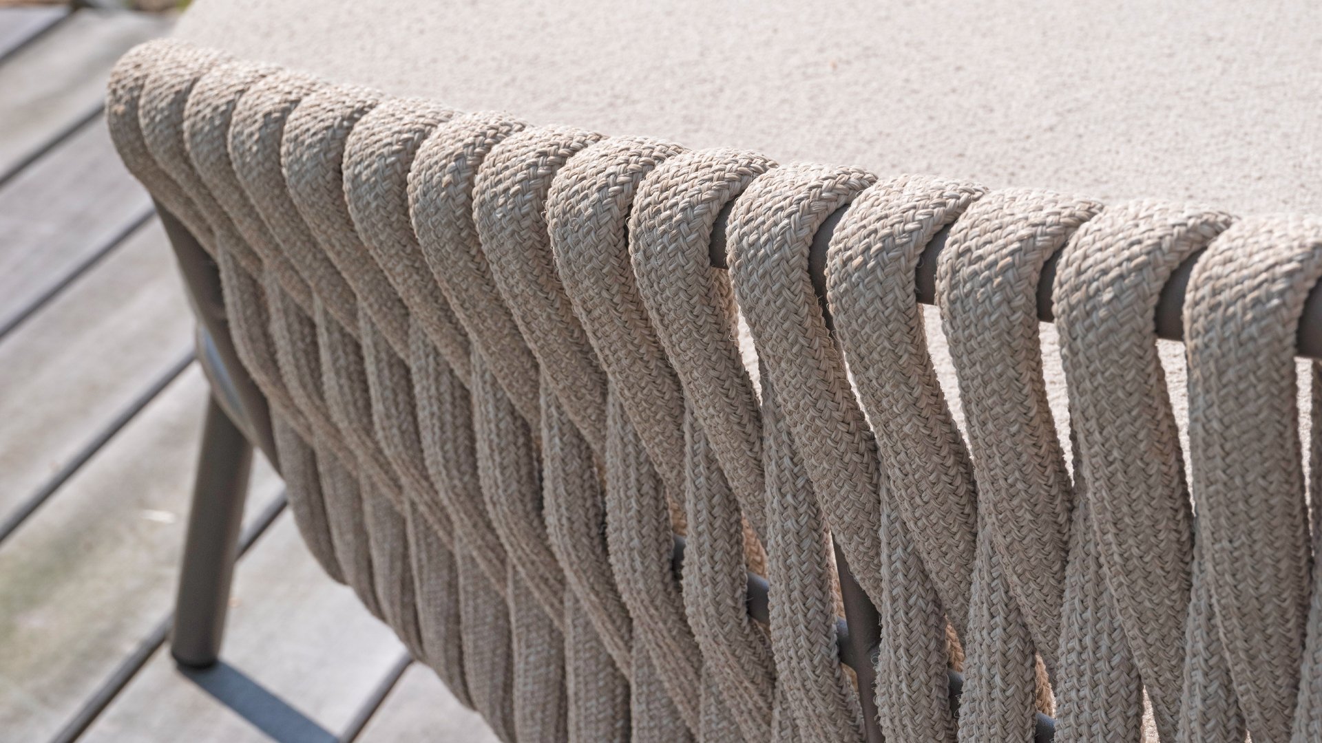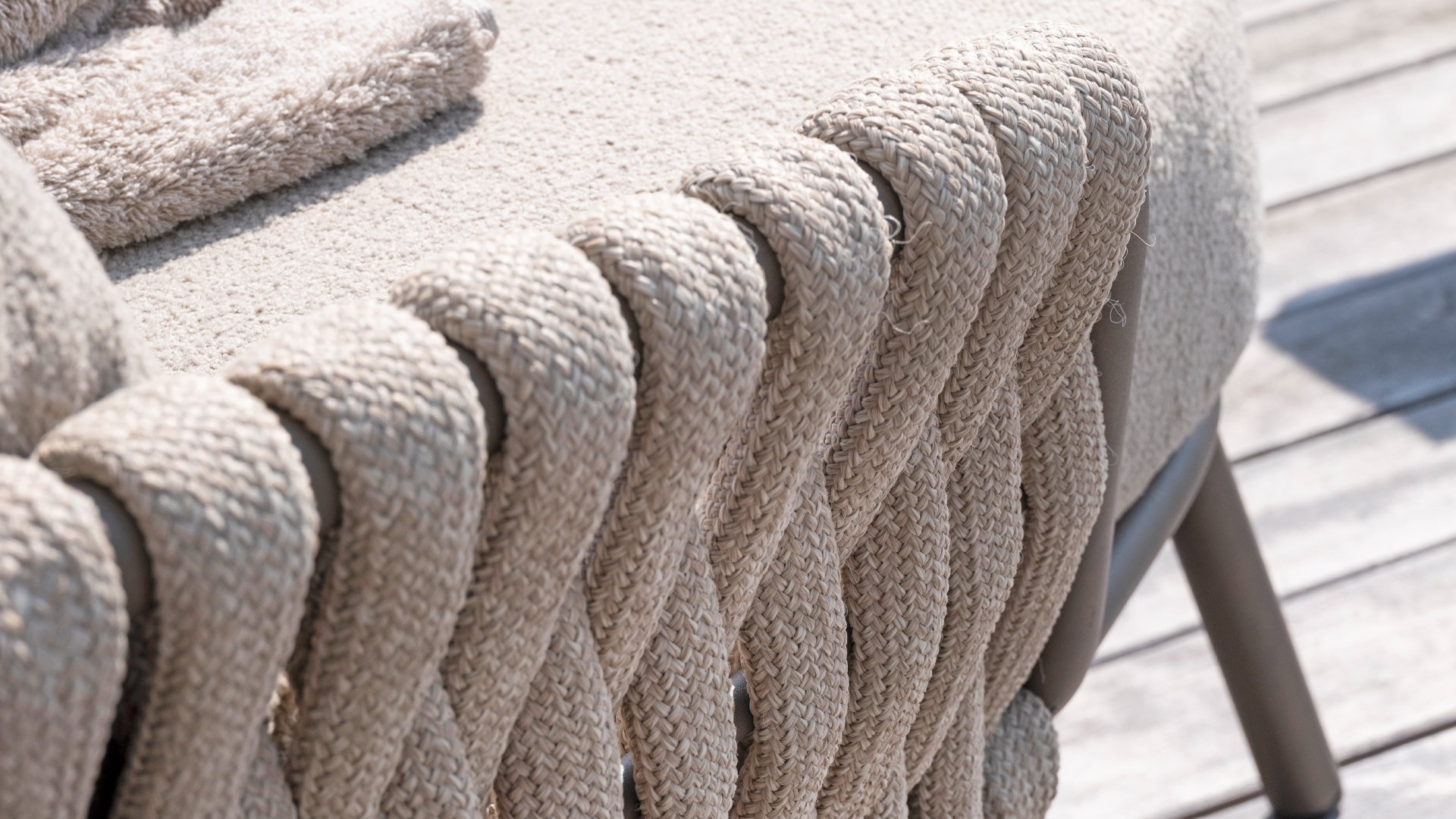 Dieses wunderschöne Material eignet sich perfekt für den Außenbereich, denn Taste Rope ist nicht nur eine normale Spitze, an der Sie Ihre Schuhe binden können. Taste verwendet ein sehr hochwertiges Faser aus 100% SDP (Slution Dyed Polypropylen). Dieses Material ist extrem stark und hat einen sehr geringen Stretchanteil. Polypropylen ist auf Ölbasis, so dass Schmutz und Verunreinigungen, genau wie unsere Kissen, kaum eindringen können. Taste bietet exklusive Designs mit handgeflochtenen Geflechtmustern und -techniken.