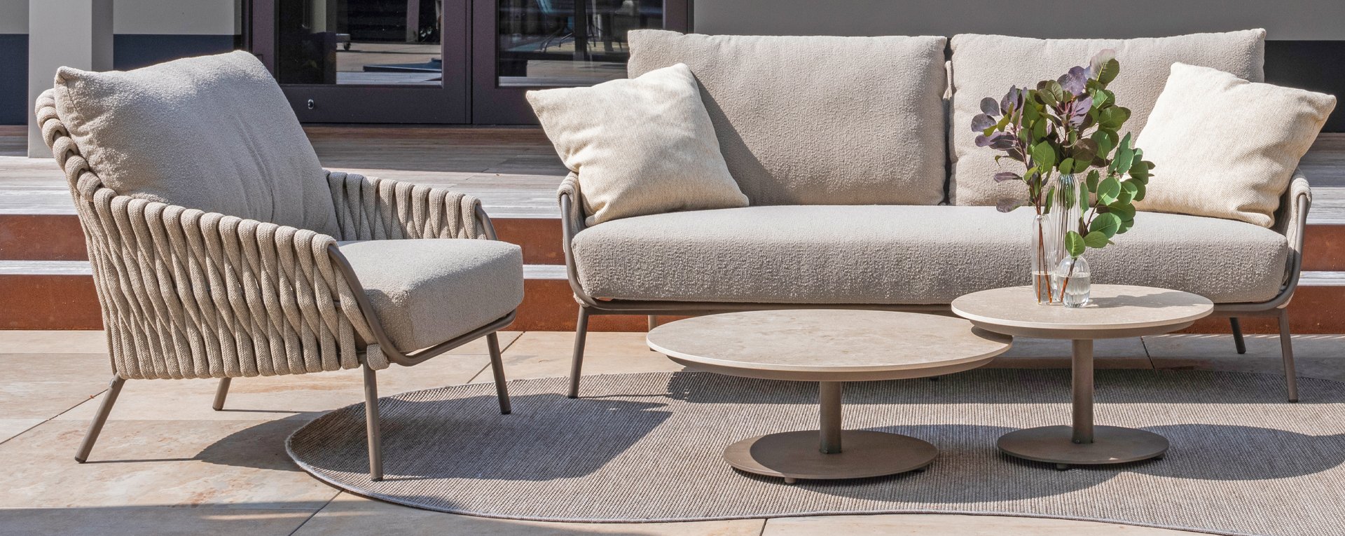 Montera. Luxus, Klasse & Qualität. Entdecken Sie das reiche Design dieser Serie. Die gewebten Sitze aus Rope, die Bouclé-Outdoor-Stoffe und der sublime Komfort. Stellen Sie Ihr ideales Loungeset zusammen, wählen Sie einen bequemen Liegestuhl, ein stilvolles Ess-Set oder schaffen Sie mit XL-Loungestühlen einen Ort zum Entspannen.