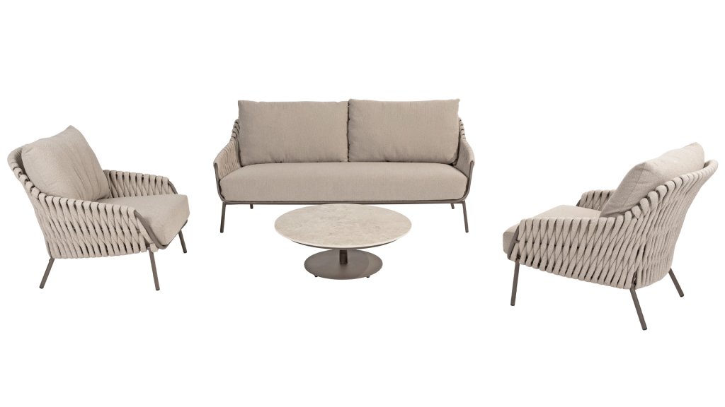 Lernen Sie das 4 Seasons Outdoor Montera loungeset kennen. Hergestellt mit einem Edelstahlrahmen in der neuen Farbe Terre. Der Seilfaden sowie die Kissen sind in der Farbe Clay gehalten, die Polsterung der Kissen ist zur Abwechslung einmal Boucle! So sieht es nicht nur schick aus, sondern auch schön, trendig und verspielt.
