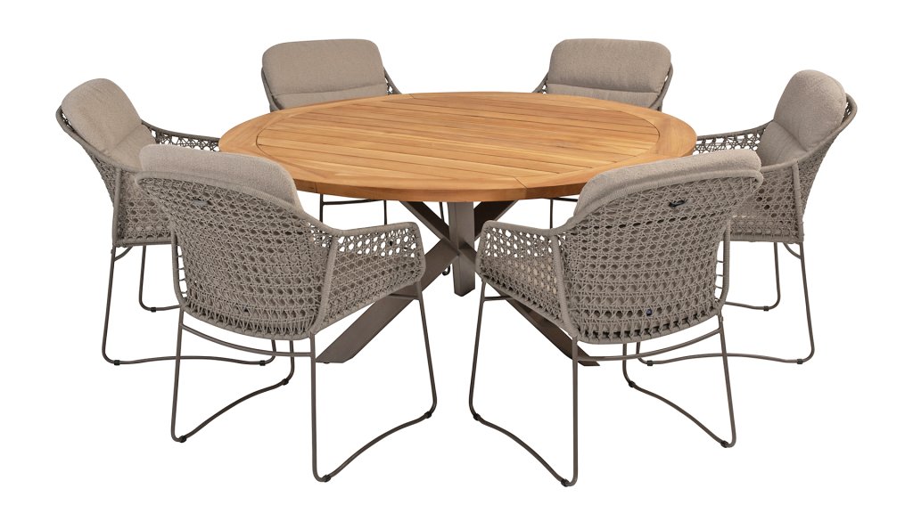 Diesen Tisch können Sie getrost als das Highlight der Kollektion bezeichnen. Das hochwertige Teakholz in Kombination mit dem schönen Kreuzbein machen diesen Taste by 4Seasons Prado 160cm Tisch zu einem Schmuckstück. Mit fast jedem Esszimmerstuhl aus unserer Kollektion ist für jeden etwas dabei. Kann mit Prado Lazy Susan kombiniert werden. Dieser Tisch ist mit den folgenden Tischbeinen erhältlich: Terre, Anthrazit, Teak, Latte.