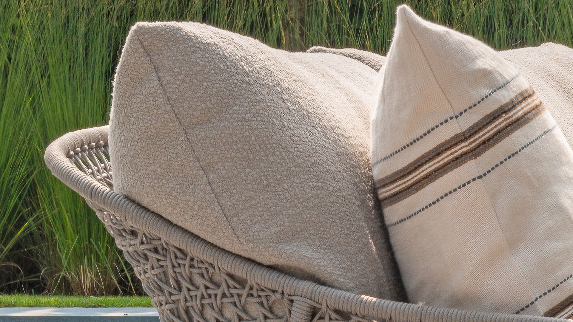 Dieses wunderschöne Material eignet sich perfekt für den Außenbereich, denn Taste Rope ist nicht nur eine normale Spitze, an der Sie Ihre Schuhe binden können. Taste verwendet ein sehr hochwertiges Faser aus 100% SDP (Slution Dyed Polypropylen). Dieses Material ist extrem stark und hat einen sehr geringen Stretchanteil. Polypropylen ist auf Ölbasis, so dass Schmutz und Verunreinigungen, genau wie unsere Kissen, kaum eindringen können. Taste bietet exklusive Designs mit handgeflochtenen Geflechtmustern und -techniken.