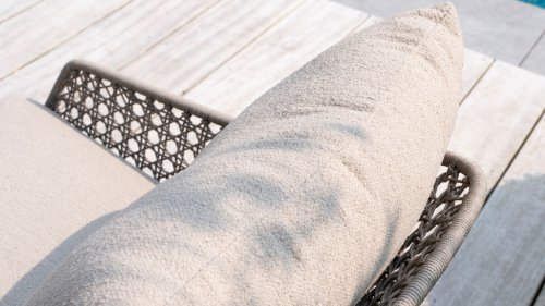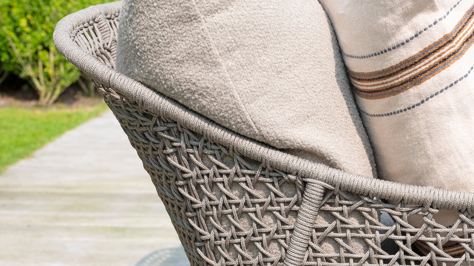 Lassen Sie sich von dem raffinierten Design der Moretti Lounge überraschen. Die eleganten Rundungen des Gestells und das kunstvolle Rope-Geflecht verleihen ihr ein zeitloses Aussehen, das perfekt in jeden Garten passt. Genießen Sie höchsten Komfort mit den dicken Kissen, die aus weichem Bouclé-Stoff bestehen und Sie einladen, bis in die späten Stunden zu entspannen.