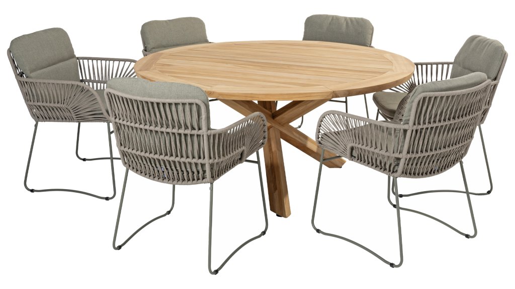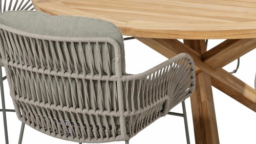 Gartenmöbel aus Teakholz bieten einen atemberaubenden Blick.Teakholz eignet sich besonders gut für den Einsatz im Außenbereich. Es ist resistent gegen Schädlinge und Pilze und widerstandsfähig gegen Sonne, Regen und Schnee. Mit der Zeit entwickelt das Teakholz eine silbergraue Patina. Gartenmöbel aus Teakholz bieten einen atemberaubenden Blick. Darüber hinaus ist es starkes Material und erfordert nur wenig Wartung. Wer die ursprüngliche Farbe des Teakholzes bevorzugt, kann durch regelmäßiges benutzen unser Pflegemittel ganz einfach das Vergrauen des Holzes verhindern.Darüber hinaus können Sie Teak mit grüner Seife reinigen. Durch Temperaturunterschiede und durch den Wechsel von Feuchtigkeit und Trockenheit können kleine Haarrisse entstehen. Es ist üblich, dass Man in dies Unvollkommenheiten findet, diese Unregelmäßigkeiten sind kennzeichnend für dieses Produkt. Diese Unregelmäßigkeiten können nie einen Anlass zu Reklamation, Garantie oder Claim formen. Es betrifft eine Unterschrift von Originalität!  Wir gewähren Garantie auf alle Produktions- und Konstruktionsfehler. Die Wirkung von Teakholz ist nicht enthalten. Wenn Sie sich für Teakholz entscheiden, erwarten wir, dass Sie diese Eigenschaften zu schätzen wissen. Eventuell auftretende Haarrisse, Äste im Teakholz und raue Oberflächen im Laufe der Zeit fallen nicht unter unsere Garantie. Diese Eigenschaften verleihen dem Teakholz seinen eigenen Charakter und sind Teil der Optik. Seien Sie vorsichtig mit einem Blumentopf oder einer Vase auf Ihrem Gartentisch aus Teakholz, da dies zu hartnäckigen Kreisen oder Farbunterschieden führen kann.