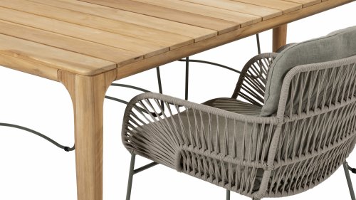 Gartenmöbel aus Teakholz bieten einen atemberaubenden Blick.Teakholz eignet sich besonders gut für den Einsatz im Außenbereich. Es ist resistent gegen Schädlinge und Pilze und widerstandsfähig gegen Sonne, Regen und Schnee. Mit der Zeit entwickelt das Teakholz eine silbergraue Patina. Gartenmöbel aus Teakholz bieten einen atemberaubenden Blick. Darüber hinaus ist es starkes Material und erfordert nur wenig Wartung. Wer die ursprüngliche Farbe des Teakholzes bevorzugt, kann durch regelmäßiges benutzen unser Pflegemittel ganz einfach das Vergrauen des Holzes verhindern.Darüber hinaus können Sie Teak mit grüner Seife reinigen. Durch Temperaturunterschiede und durch den Wechsel von Feuchtigkeit und Trockenheit können kleine Haarrisse entstehen. Es ist üblich, dass Man in dies Unvollkommenheiten findet, diese Unregelmäßigkeiten sind kennzeichnend für dieses Produkt. Diese Unregelmäßigkeiten können nie einen Anlass zu Reklamation, Garantie oder Claim formen. Es betrifft eine Unterschrift von Originalität!  Wir gewähren Garantie auf alle Produktions- und Konstruktionsfehler. Die Wirkung von Teakholz ist nicht enthalten. Wenn Sie sich für Teakholz entscheiden, erwarten wir, dass Sie diese Eigenschaften zu schätzen wissen. Eventuell auftretende Haarrisse, Äste im Teakholz und raue Oberflächen im Laufe der Zeit fallen nicht unter unsere Garantie. Diese Eigenschaften verleihen dem Teakholz seinen eigenen Charakter und sind Teil der Optik. Seien Sie vorsichtig mit einem Blumentopf oder einer Vase auf Ihrem Gartentisch aus Teakholz, da dies zu hartnäckigen Kreisen oder Farbunterschieden führen kann.