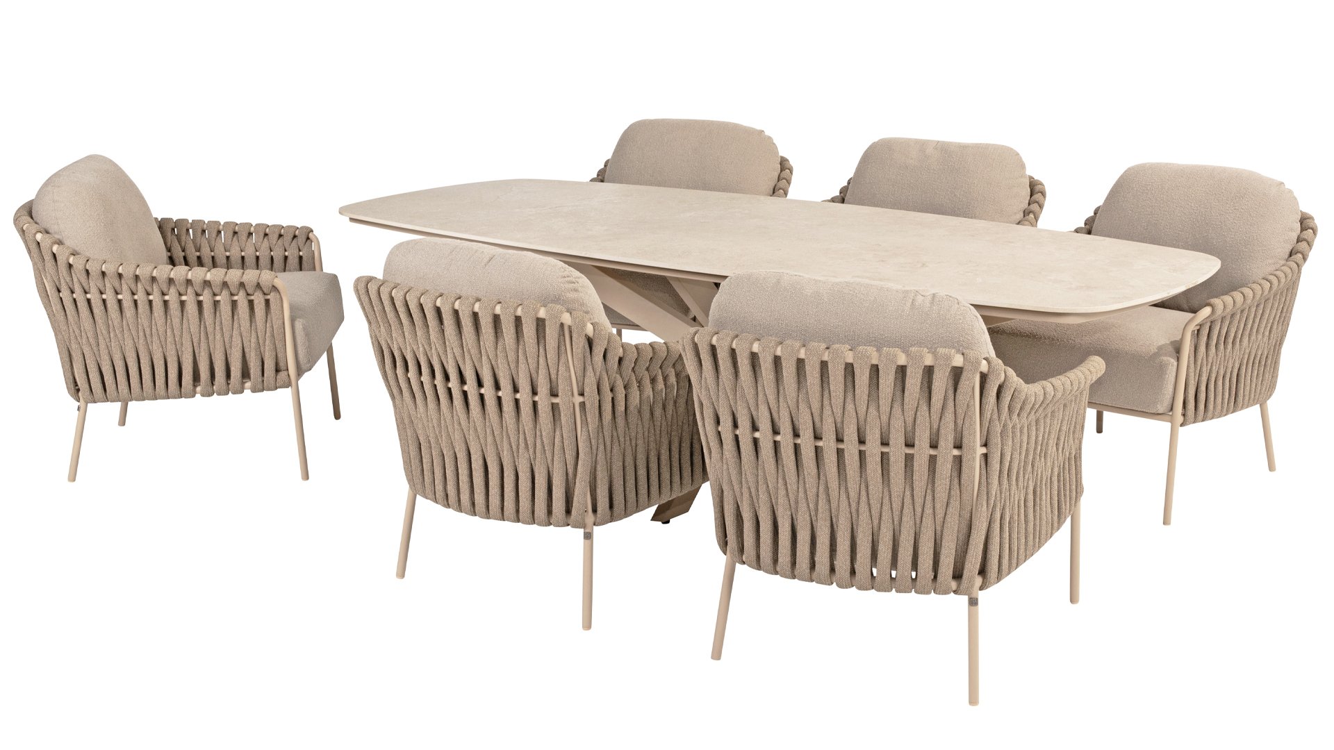 Der Nevada-Tisch ist ein wunderschöner Low-Dining-Tisch, der perfekt für das Leben im Freien geeignet ist. Mit seiner scheinbar ovalen (barrel) Keramikplatte zusammen mit einem latte oder terre farbenen Gestell strahlt er Wärme und Gemütlichkeit aus. Die Keramik eignet sich ideal für den Außenbereich: Sie ist langlebig, fleckenresistent und einfach zu reinigen.