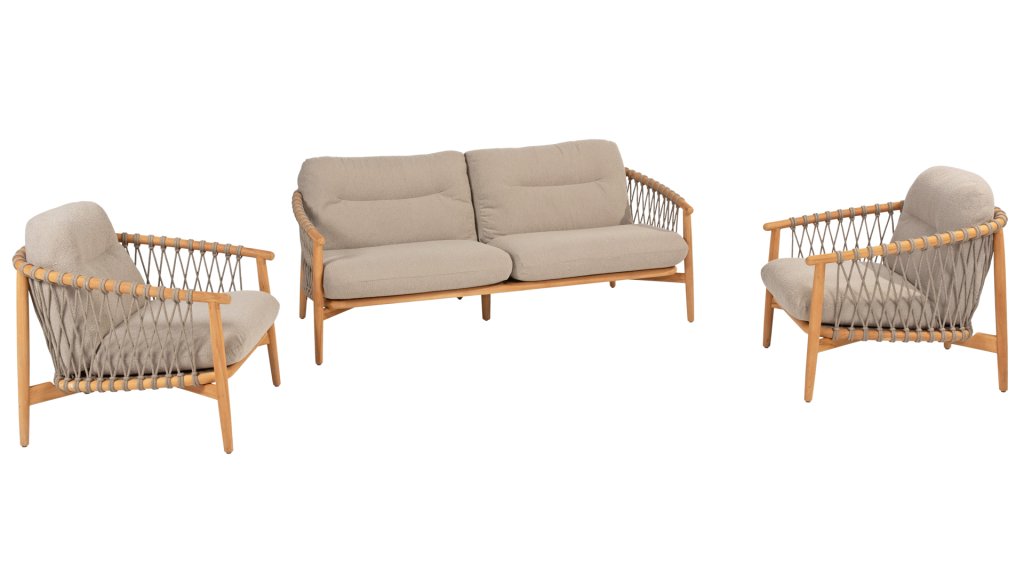 4Seasons Nora Lounge Entdecken Sie die perfekte Kombination aus Stil und Komfort mit der Nora Lounge von 4 Seasons Outdoor. Dieses Lounge-Set ist ein schönes Beispiel für Design bis ins letzte Detail, bei dem die ganze Leidenschaft in die Nora-Lounge-Serie eingeflossen ist. Das Teakholzgestell mit eleganten Kurven wird durch auffällige Seilmuster akzentuiert und macht diesen Stuhl zu einem echten Hingucker in Ihrem Außenbereich.