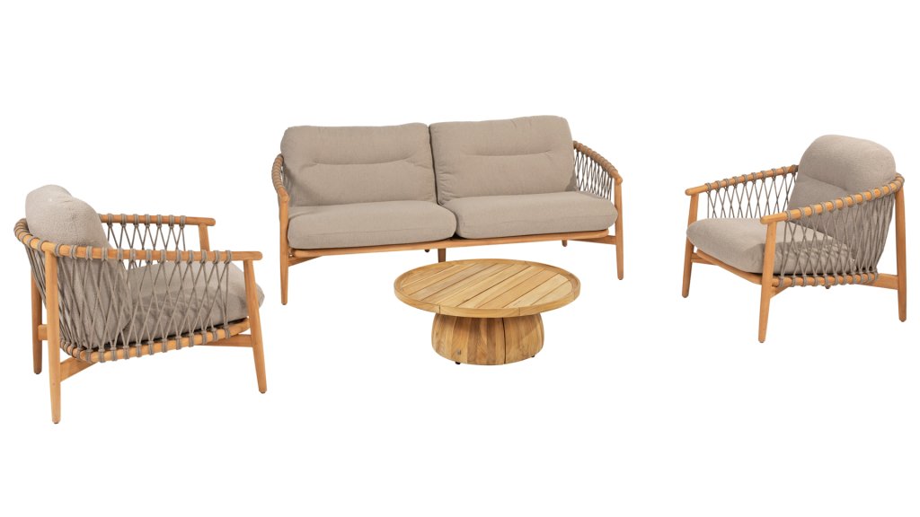 4Seasons Nora Lounge Entdecken Sie die perfekte Kombination aus Stil und Komfort mit der Nora Lounge von 4 Seasons Outdoor. Dieses Lounge-Set ist ein schönes Beispiel für Design bis ins letzte Detail, bei dem die ganze Leidenschaft in die Nora-Lounge-Serie eingeflossen ist. Das Teakholzgestell mit eleganten Kurven wird durch auffällige Seilmuster akzentuiert und macht diesen Stuhl zu einem echten Hingucker in Ihrem Außenbereich.