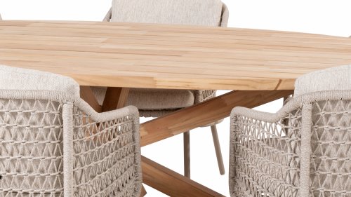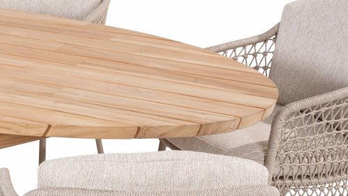 Gartenmöbel aus Teakholz bieten einen atemberaubenden Blick.Teakholz eignet sich besonders gut für den Einsatz im Außenbereich. Es ist resistent gegen Schädlinge und Pilze und widerstandsfähig gegen Sonne, Regen und Schnee. Mit der Zeit entwickelt das Teakholz eine silbergraue Patina. Gartenmöbel aus Teakholz bieten einen atemberaubenden Blick. Darüber hinaus ist es starkes Material und erfordert nur wenig Wartung. Wer die ursprüngliche Farbe des Teakholzes bevorzugt, kann durch regelmäßiges benutzen unser Pflegemittel ganz einfach das Vergrauen des Holzes verhindern.Darüber hinaus können Sie Teak mit grüner Seife reinigen. Durch Temperaturunterschiede und durch den Wechsel von Feuchtigkeit und Trockenheit können kleine Haarrisse entstehen. Es ist üblich, dass Man in dies Unvollkommenheiten findet, diese Unregelmäßigkeiten sind kennzeichnend für dieses Produkt. Diese Unregelmäßigkeiten können nie einen Anlass zu Reklamation, Garantie oder Claim formen. Es betrifft eine Unterschrift von Originalität!  Wir gewähren Garantie auf alle Produktions- und Konstruktionsfehler. Die Wirkung von Teakholz ist nicht enthalten. Wenn Sie sich für Teakholz entscheiden, erwarten wir, dass Sie diese Eigenschaften zu schätzen wissen. Eventuell auftretende Haarrisse, Äste im Teakholz und raue Oberflächen im Laufe der Zeit fallen nicht unter unsere Garantie. Diese Eigenschaften verleihen dem Teakholz seinen eigenen Charakter und sind Teil der Optik. Seien Sie vorsichtig mit einem Blumentopf oder einer Vase auf Ihrem Gartentisch aus Teakholz, da dies zu hartnäckigen Kreisen oder Farbunterschieden führen kann.