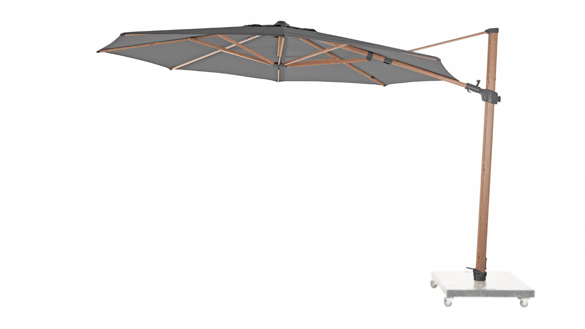 Jeder Hängeschirm von 4Seasons Outdoor kann auf dem Sockel gedreht und nach hinten geneigt werden, um die tiefe Sonne zu fangen. Diese Premium-Variante kann auch seitlich geneigt werden.