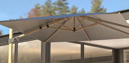 4Seasons Outdoor Siesta ist ein qualitativer Sonnenschirm. Hergestellt aus einem Aluminiumrahmen steht er für schwere Qualität. Das Tuch ist aus Solefin gefertigt. Dieses Material zeichnet sich durch seine hohe Farbechtheit und Langlebigkeit aus. Standardmäßig 5 Jahre Garantie.