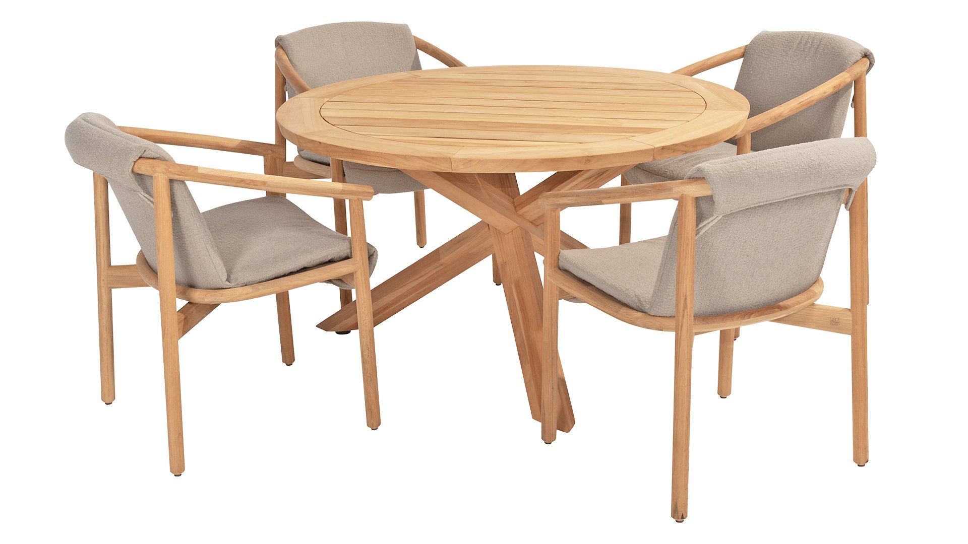 Das Flaggschiff der Kollektion, so kann man diesen Tisch ruhig bezeichnen. Das hochwertige Teakholz in Kombination mit dem schönen Kreuzfuß machen diesen Taste by 4Seasons Prado Ø130cm Tisch zu einem Schmuckstück. Er lässt sich mit nahezu jedem Esszimmerstuhl aus unserer Kollektion kombinieren, sodass für jeden Geschmack etwas dabei ist. Optional kann er mit Prado Lazy Susan kombiniert werden. Die Platte ist sowohl in Teakholz als auch in Keramik erhältlich.