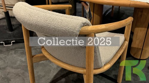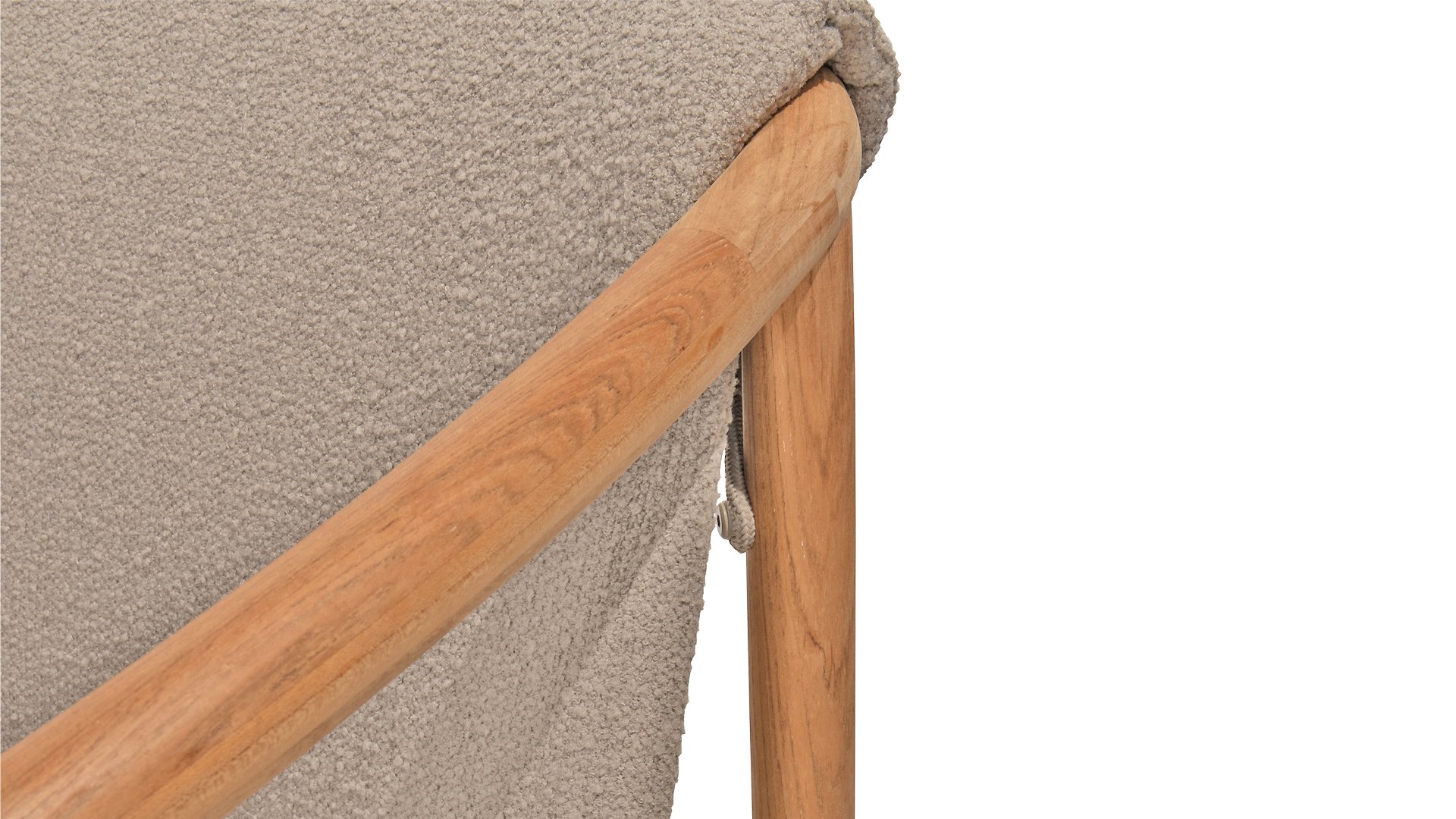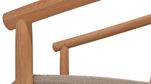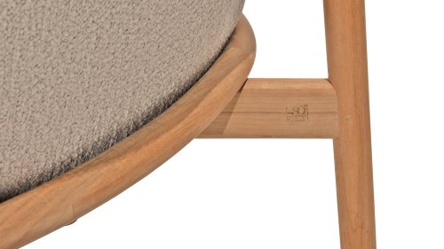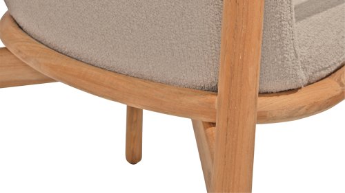 • Stilvolles und zeitloses Design: Die Kombination aus Teakholz und taupefarbenem Bouclé schafft eine elegante, beruhigende Atmosphäre in jedem Garten.