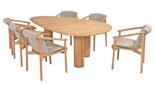 Gartenmöbel aus Teakholz bieten einen atemberaubenden Blick.Teakholz eignet sich besonders gut für den Einsatz im Außenbereich. Es ist resistent gegen Schädlinge und Pilze und widerstandsfähig gegen Sonne, Regen und Schnee. Mit der Zeit entwickelt das Teakholz eine silbergraue Patina. Gartenmöbel aus Teakholz bieten einen atemberaubenden Blick. Darüber hinaus ist es starkes Material und erfordert nur wenig Wartung. Wer die ursprüngliche Farbe des Teakholzes bevorzugt, kann durch regelmäßiges benutzen unser Pflegemittel ganz einfach das Vergrauen des Holzes verhindern.Darüber hinaus können Sie Teak mit grüner Seife reinigen. Durch Temperaturunterschiede und durch den Wechsel von Feuchtigkeit und Trockenheit können kleine Haarrisse entstehen. Es ist üblich, dass Man in dies Unvollkommenheiten findet, diese Unregelmäßigkeiten sind kennzeichnend für dieses Produkt. Diese Unregelmäßigkeiten können nie einen Anlass zu Reklamation, Garantie oder Claim formen. Es betrifft eine Unterschrift von Originalität!  Wir gewähren Garantie auf alle Produktions- und Konstruktionsfehler. Die Wirkung von Teakholz ist nicht enthalten. Wenn Sie sich für Teakholz entscheiden, erwarten wir, dass Sie diese Eigenschaften zu schätzen wissen. Eventuell auftretende Haarrisse, Äste im Teakholz und raue Oberflächen im Laufe der Zeit fallen nicht unter unsere Garantie. Diese Eigenschaften verleihen dem Teakholz seinen eigenen Charakter und sind Teil der Optik. Seien Sie vorsichtig mit einem Blumentopf oder einer Vase auf Ihrem Gartentisch aus Teakholz, da dies zu hartnäckigen Kreisen oder Farbunterschieden führen kann.