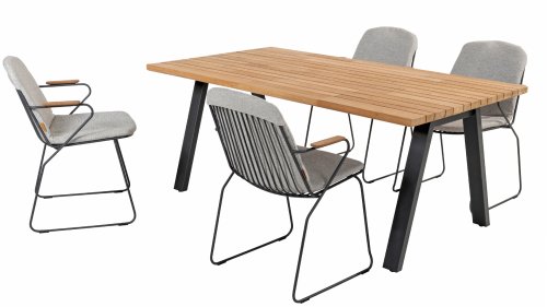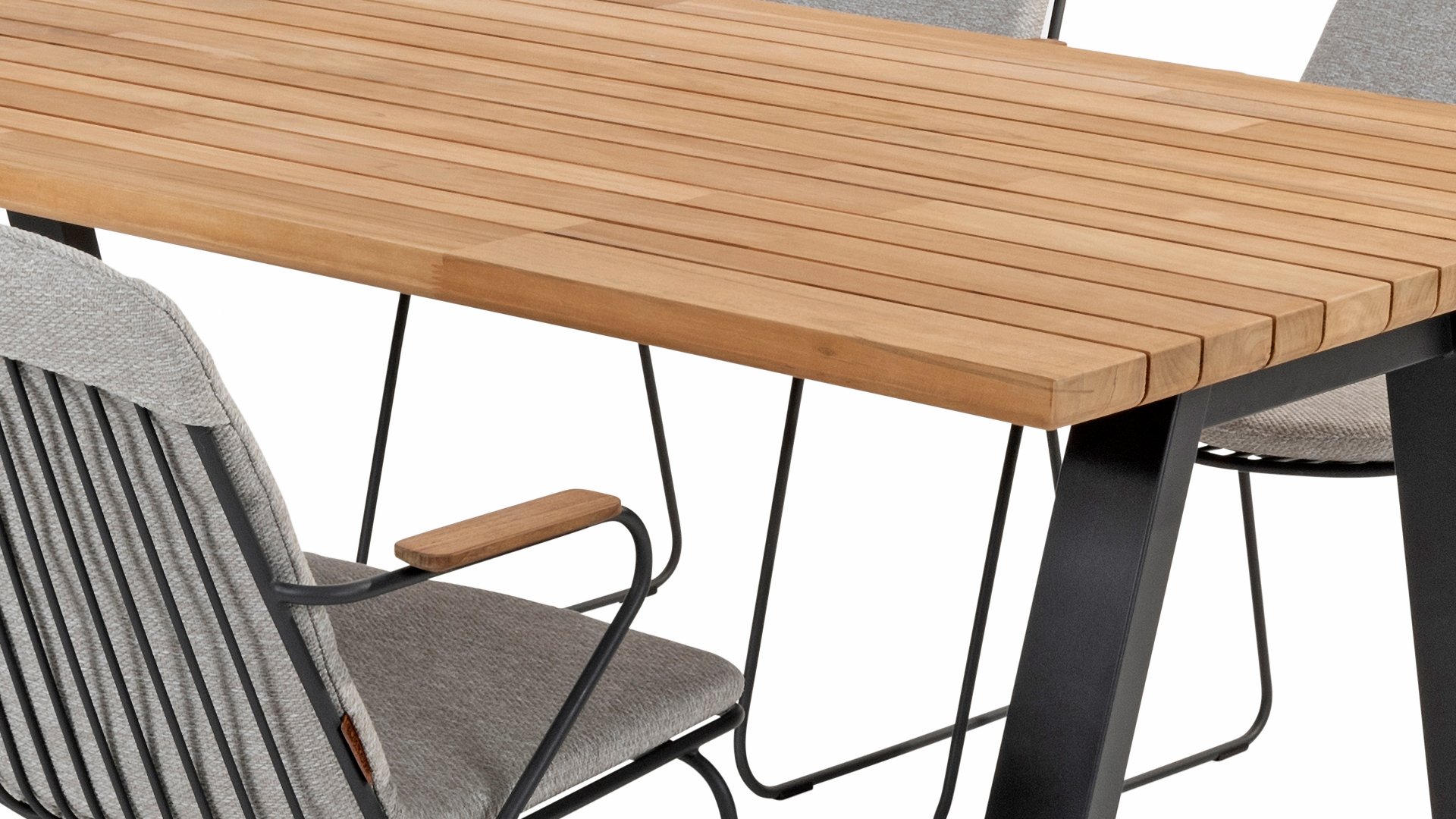 Gartenmöbel aus Teakholz bieten einen atemberaubenden Blick.Teakholz eignet sich besonders gut für den Einsatz im Außenbereich. Es ist resistent gegen Schädlinge und Pilze und widerstandsfähig gegen Sonne, Regen und Schnee. Mit der Zeit entwickelt das Teakholz eine silbergraue Patina. Gartenmöbel aus Teakholz bieten einen atemberaubenden Blick. Darüber hinaus ist es starkes Material und erfordert nur wenig Wartung. Wer die ursprüngliche Farbe des Teakholzes bevorzugt, kann durch regelmäßiges benutzen unser Pflegemittel ganz einfach das Vergrauen des Holzes verhindern.Darüber hinaus können Sie Teak mit grüner Seife reinigen. Durch Temperaturunterschiede und durch den Wechsel von Feuchtigkeit und Trockenheit können kleine Haarrisse entstehen. Es ist üblich, dass Man in dies Unvollkommenheiten findet, diese Unregelmäßigkeiten sind kennzeichnend für dieses Produkt. Diese Unregelmäßigkeiten können nie einen Anlass zu Reklamation, Garantie oder Claim formen. Es betrifft eine Unterschrift von Originalität!  Wir gewähren Garantie auf alle Produktions- und Konstruktionsfehler. Die Wirkung von Teakholz ist nicht enthalten. Wenn Sie sich für Teakholz entscheiden, erwarten wir, dass Sie diese Eigenschaften zu schätzen wissen. Eventuell auftretende Haarrisse, Äste im Teakholz und raue Oberflächen im Laufe der Zeit fallen nicht unter unsere Garantie. Diese Eigenschaften verleihen dem Teakholz seinen eigenen Charakter und sind Teil der Optik. Seien Sie vorsichtig mit einem Blumentopf oder einer Vase auf Ihrem Gartentisch aus Teakholz, da dies zu hartnäckigen Kreisen oder Farbunterschieden führen kann.