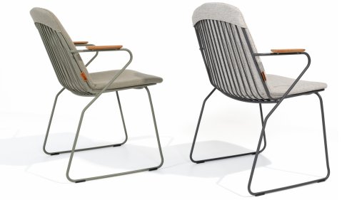 Es gibt nichts Besseres als 4SO Veneto Unique seiner Art, den minimalistischen Veneto-Esszimmerstuhl aus dünnen Edelstahlrohren, erhältlich in den Farben: Anthrazit, Terre und Olive. Ein ergonomisches Design, Armlehnen aus Teakholz und das Kissen, das Sie einfach über die Rückenlehne schieben können. Veneto ist außerdem stapelbar, ein wirklich einzigartiger Esszimmerstuhl.