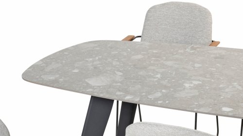 Der 4Seasons Outdoor Montana ist ein wunderschöner Tisch, der sofort ins Auge fällt. Es sieht nicht nur modern aus, sondern ist durch die Form der Tischplatte auch äußerst praktisch. Der Tisch zeichnet sich durch seine dänisch-ovale Tischplatte aus, die Form schafft ausreichend Platz auf allen Seiten des Tisches. Bei der Montana-Serie gibt es mehrere Optionen; Die 240 cm hohe Terrazzo-Keramikplatte kann mit einem Untergestell aus Edelstahl oder Teakholz kombiniert werden. Innerhalb der Montana-Serie gibt es auch einen 280 cm großen Tisch mit HPL-Platte.