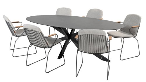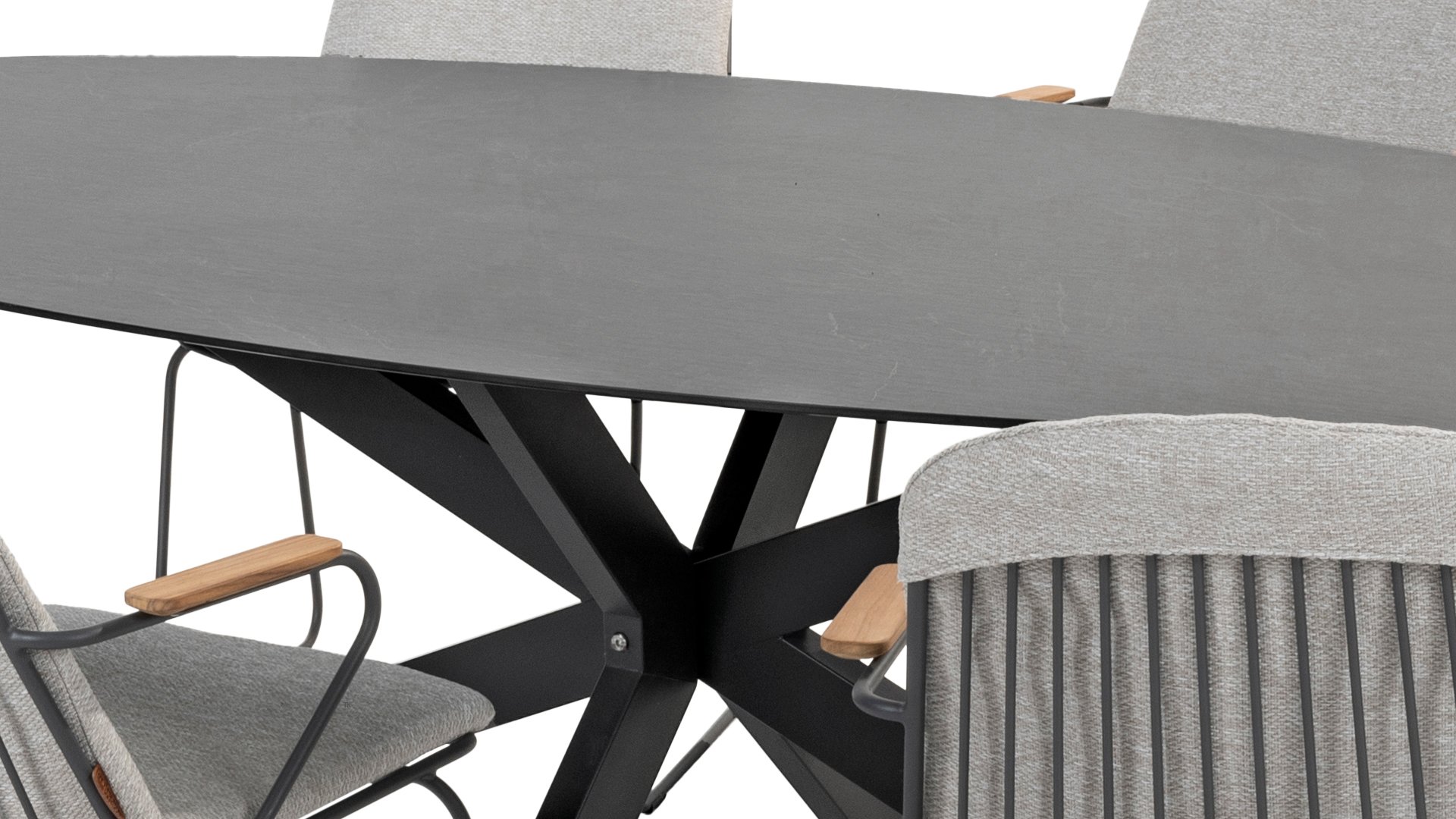 Die HPL-Tische erfreuen sich seit Jahren großer Beliebtheit im 4 Seasons Outdoor-Sortiment und sind jetzt auch in Oval erhältlich. Was sofort ins Auge sticht, ist das schnittig gestaltete Chassis. Neben dem kunstvollen Design ist die Basis auch sehr praktisch. Er bietet ausreichend Platz für 6 Sitzplätze ohne Behinderung durch ein Tischbein.