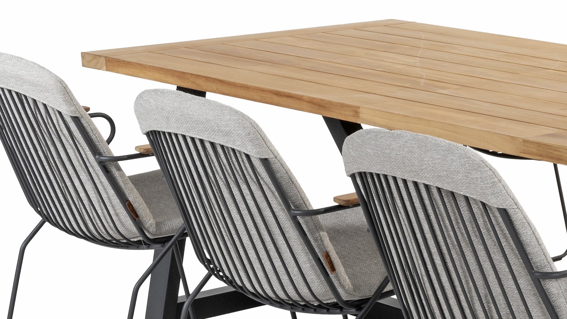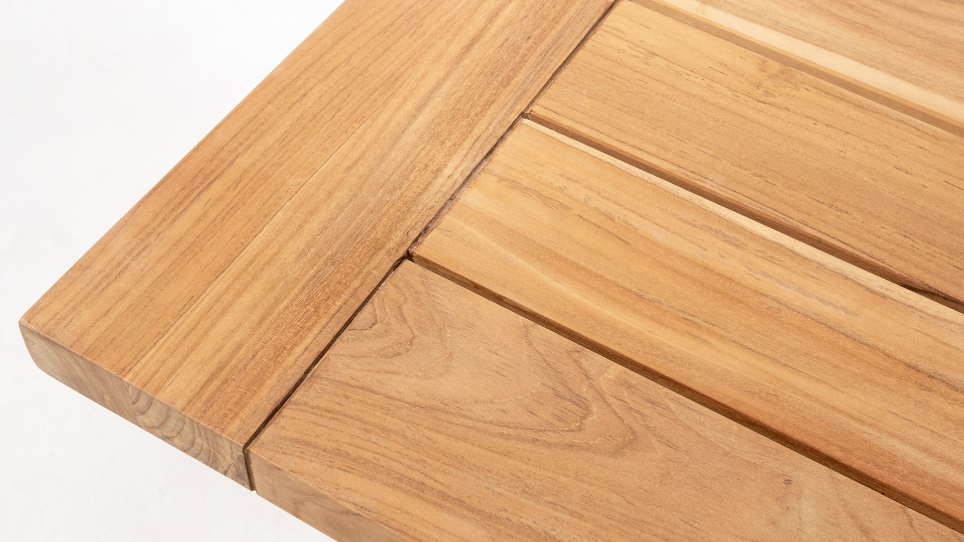 Gartenmöbel aus Teakholz bieten einen atemberaubenden Blick.Teakholz eignet sich besonders gut für den Einsatz im Außenbereich. Es ist resistent gegen Schädlinge und Pilze und widerstandsfähig gegen Sonne, Regen und Schnee. Mit der Zeit entwickelt das Teakholz eine silbergraue Patina. Gartenmöbel aus Teakholz bieten einen atemberaubenden Blick. Darüber hinaus ist es starkes Material und erfordert nur wenig Wartung. Wer die ursprüngliche Farbe des Teakholzes bevorzugt, kann durch regelmäßiges benutzen unser Pflegemittel ganz einfach das Vergrauen des Holzes verhindern.Darüber hinaus können Sie Teak mit grüner Seife reinigen. Durch Temperaturunterschiede und durch den Wechsel von Feuchtigkeit und Trockenheit können kleine Haarrisse entstehen. Es ist üblich, dass Man in dies Unvollkommenheiten findet, diese Unregelmäßigkeiten sind kennzeichnend für dieses Produkt. Diese Unregelmäßigkeiten können nie einen Anlass zu Reklamation, Garantie oder Claim formen. Es betrifft eine Unterschrift von Originalität! Wir gewähren Garantie auf alle Produktions- und Konstruktionsfehler. Die Wirkung von Teakholz ist nicht enthalten. Wenn Sie sich für Teakholz entscheiden, erwarten wir, dass Sie diese Eigenschaften zu schätzen wissen. Eventuell auftretende Haarrisse, Äste im Teakholz und raue Oberflächen im Laufe der Zeit fallen nicht unter unsere Garantie. Diese Eigenschaften verleihen dem Teakholz seinen eigenen Charakter und sind Teil der Optik. Seien Sie vorsichtig mit einem Blumentopf oder einer Vase auf Ihrem Gartentisch aus Teakholz, da dies zu hartnäckigen Kreisen oder Farbunterschieden führen kann.